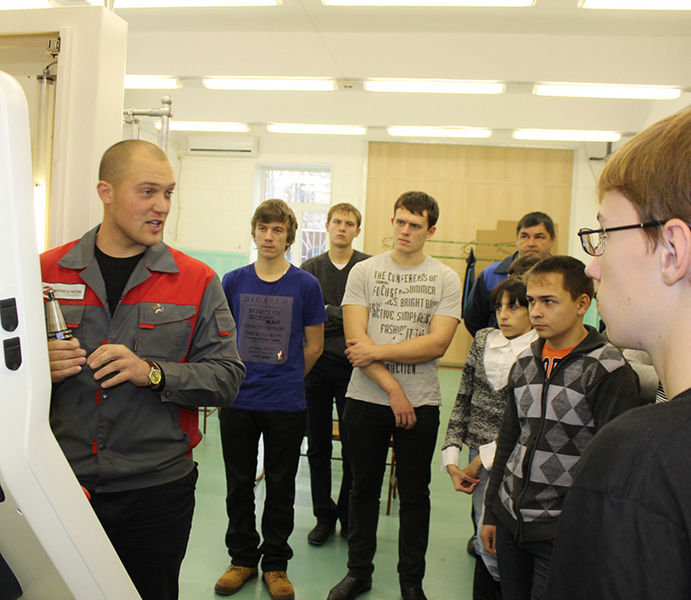 Учебный мастер-классНеобычное мероприятие прошло в учебном центре авиакомпании "Прогресс" — вместо привычных производственных занятий, каковыми наполнены будни этого важного для предприятия подразделения, прошел необычный мастер-класс по фрезерной механической обработке, в ходе которого школьникам, проходящим обучение в классах с техническим уклоном, были продемонстрированы возможности различного оборудования. — Задумано это мероприятие, — говорит начальник учебного центра Елена Абиева, — с целью наглядной демонстрации обработки одной и той же детали разными станками. В первой части мастер-класса мы показываем, как работает обычный фрезерный станок. На первом этапе пятнадцать школьников прошли в аудиторию, где специалист учебного центра Рита Соболева рассказала о целях мероприятия: — На разных станках будет проводиться одна и та же операция — из алюминиевой заготовки будет изготавливаться деталь под названием "подставка". Суть технологической операции сводится к снятию двухмиллиметрового слоя, с последующим снятием ступенек. В итоге мы должны получить с двух станков абсолютно одинаковые детали. После этих объяснений школьники прошли в учебный цех, где мастер производственного обучения Сергей Прищепа уже подготовил вертикально-фрезерный универсальный станок FYD-32. В станок была закреплена заготовка, и мастер-класс начался: — Скорость вращения режущего инструмента на этом станке, — говорит Сергей Прищепа, — составляет 350 оборотов в минуту. Всего на изготовление данной детали уйдет двадцать минут. Для проведения второго этапа мастер-класса школьники снова поднялись в учебную аудиторию. Используя видеопроектор, мастер производственного обучения Дмитрий Лаптев показал электронную модель детали, а затем и симуляцию ее обработки. — Здесь видно, — говорит Дмитрий, — как режущий инструмент идет по детали, снимая заданный слой. Для того, чтобы станок с ЧПУ так отработал, необходимо написать соответствующую программу. Написание легких программ возможно прямо с рабочего пульта оператора станка, а вот сложные программы уже пишутся инженерами-технологами на специальных компьютерах. Основное отличие универсального токарно-фрезерного станка с ЧПУ DMC-635V от других, привычных нам станков, в том, что он обладает большей скоростью вращения режущего инструмента. В данном случае мы будем работать на скорости три тысячи пятьсот оборотов в минуту, что в десять раз быстрее, чем на обычном станке. Соответственно, уменьшается и время, которое необходимо затратить на обработку детали. На деталь "подставка" у нас уйдет не более трех минут. После этих слов школьники прошли в учебный цех, в котором установлены станки с числовым программным управлением. Дмитрий Лаптев установил в станок заготовку, а через три минуты в руках школьников уже была вновь изготовленная деталь. Она в точности совпадала в той деталью, которую изготовил Сергей Прищепа. По окончанию практической части мастер-класса школьники заполнили анкеты, предназначенные для выявления их предпочтений в обучении в будущем. — В результате мы выявили некоторую закономерность, — говорит начальник учебного центра Елена Абиева. — Оказалось, что более 80 процентов опрошенных связывают свою жизнь с техническими специальностями, некоторые видят себя на службе в Вооруженных 