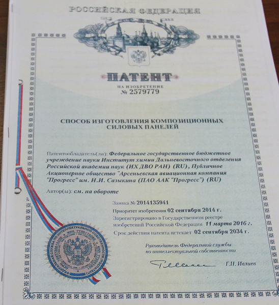 «Прогресс» получил патент на инновационную разработкуПАО ААК "ПРОГРЕСС", лидирующее предприятие ПРО СМР, при содействии холдинга "Вертолёты России" получил патент на изобретение инновационной технологии. Это событие произошло впервые за последние 20 лет. В советском прошлом авиационная компания "Прогресс" довольно активно получала патенты и авторские права на рационализаторские предложения и нововведения своих сотрудников. За этот период предприятие стала обладателем десятков патентов и свидетельств государственной регистрации на новейшие разработки, которые успешно применялись в области вертолетостроения. В настоящее время Федеральная служба по интеллектуальной собственности подтвердила новизну патентуемого способа изготовления композиционных силовых панелей и его применение в промышленности. Изобретение относится к способам изготовления тонкостенных многослойных силовых панелей с каркасом профильных подкрепляющих ребер и может быть использовано при изготовлении деталей, узлов и агрегатов в машиностроении, ядерной энергетике, авиакосмической отрасли, в частности, при изготовлении крупногабаритной технологической оснастки для производства панелей фюзеляжа среднего вертолета. Надо отметить, что существуют несколько способов изготовления конструкционных панелей из ПКМ, но в данном случае новый способ решает задачу формирования системы ребер (силового набора каркаса) поперечного сечения различной высоты и различных по длине и конфигурации и обеспечивает равномерную прочность конструкции. Авторами этого изобретения стала группа сотрудников предприятия и представителей научных кругов, среди которых — управляющий директор ПАО ААК "ПРОГРЕСС" Юрий Петрович Денисенко; советник управляющего директора по научной работе Олег Шамильевич Бердиев; директор института химии ДВО РАН, академик РАН, доктор технических наук Валентин Иванович Сергиенко; начальник лаборатории Института химии ДВО РАН, профессор Виталий Георгиевич Добржанский; директор филиала ДВФУ в г. Арсеньеве, доктор технических наук Юрий Федорович Огнев. Теперь плод технической мысли и конструкторской смекалки под защитой государства: компания-патентообладатель — Институт химии ДВО РАН — получила на него исключительное право. «Прогресс Приморья», № 17 (381) от 26.05.2016 г. |