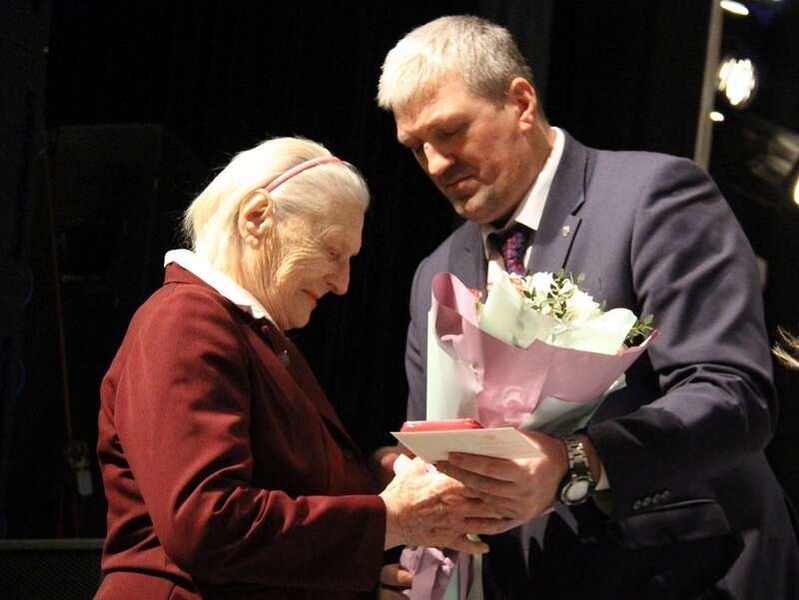 В Арсеньеве продолжается вручение юбилейных медалей ветеранамНа сцене Дворца культуры "Прогресс" врио главы Арсеньевского городского округа Владимир Сергеевич Пивень вручил медали "75 лет Победы в Великой Отечественной войне 1941–1945 гг." жителям нашего города. Среди награжденных – участники Великой Отечественной войны Захар Александрович Губайдулин и Василий Васильевич Ефимов, труженик тыла, почетный гражданин города Арсеньева Мария Алексеевна Немчинова, труженики тыла Софья Павловна Бирюкова, Мария Трофимовна Корнейчук, Леонид Дмитриевич Харин, несовершеннолетний узник фашистских лагерей Зоя Михайловна Решетникова. Напомним, что юбилейная медаль "75 лет Победы в Великой Отечественной войне 1941–1945 гг." учреждена Указом Президента Российской Федерации от 13 июня 2019 года. На лицевой стороне медали изображена фигура воина-победителя, который держит пистолет-пулемет Шпагина и пишет на стене здания Рейхстага слово "Победа!". Памятные медали будут вручены 165 арсеньевским ветеранам: участникам войны, труженикам тыла, жителям блокадного Ленинграда, несовершеннолетним узникам фашистских лагерей. «Прогресс Приморья», № 6 (569) от 21.02.2020 г. |
