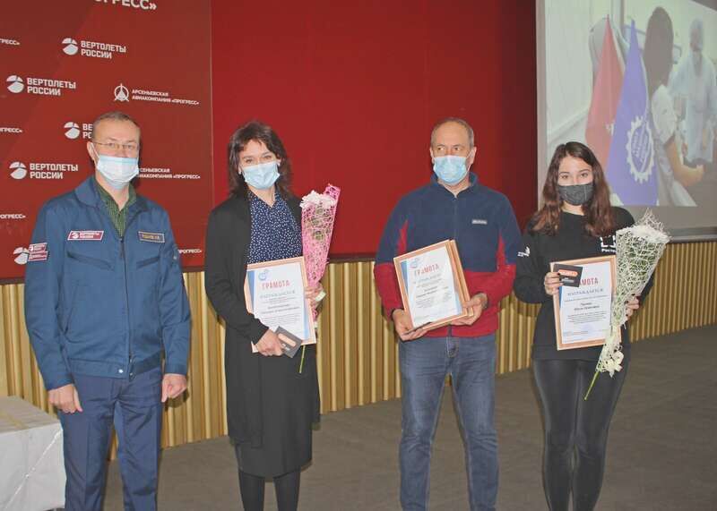 Отметили достойныхВ последнее воскресенье сентября свой профессиональный праздник отметили рабочие и инженеры машиностроительной отрасли. По этому торжественному поводу в большом конференц-зале информационного центра ПАО ААК "ПРОГРЕСС" состоялось награждение сотрудников лидирующего предприятия Приморского регионального отделения Общероссийской общественной организации "Союз машиностроителей России". В награждении приняли участие: руководитель Аппарата управляющего директора – исполняющий обязанности заместителя управляющего директора по управлению персоналом ААК "Прогресс", член Регионального совета Приморского регионального отделения Союза машиностроителей России Илья Рудаков, помощник руководителя Аппарата Приморского РО СоюзМаш России Ирина Клочкова и председатель Первичной профсоюзной общественной организации предприятия Андрей Никулин. Среди первых поднявшихся на сцену были работники предприятия, отмеченные Общероссийской общественной организацией "Союз машиностроителей России". В честь Дня машиностроителя за большой личный вклад в развитие промышленности, многолетний добросовестный труд благодарностями Первого вице-президента Союза машиностроителей России Владимира Гутенева были награждены ведущий инженер службы маркетинга Михаил Юзгин и инженер-программист службы маркетинга Сергей Ильченко. Медалями "За доблестный труд" II степени награждены начальник управления кадровой политики и развития персонала Елена Лесникова и начальник механического цеха Денис Кармышаев. За добросовестный труд, целеустремленность, преданность делу и активное участие в работе Приморского регионального отделения Союза машиностроителей России грамотами председателя Приморского РО СоюзМаш России Юрия Денисенко были отмечены: ведущий специалист по экспозиционной и выставочной работе Татьяна Болотникова, руководитель пресс-службы Юлия Герман, начальник бюро отдела главного конструктора Иван Кумченко, инженер-конструктор отдела главного конструктора Андрей Тарасов, инженер-технолог литейного цеха Александр Пономарёв, главный специалист по автоматизации кадрового делопроизводства управления кадровой политики и развития персонала Андрей Береснев, специалисты службы маркетинга Михаил Юзгин и Сергей Ильченко, заместитель председателя Первичной профсоюзной общественной организации ААК "Прогресс" Олег Неплюев, а также всем известный внештатный корреспондент краевых и федеральных СМИ Вадим Перевалов. В рамках торжественной церемонии награждения всем собравшимся был продемонстрирован ролик о прошедшей в Арсеньеве донорской акции "Капля крови – океан жизней", приуроченной к празднованию Дня машиностроителя, в которой сотрудники "Прогресса" приняли активное участие. Напомним, что организаторами данной акции традиционно выступили Приморское региональное отделение Союза машиностроителей России, Арсеньевская авиакомпания "Прогресс", Первичная профсоюзная общественная организация предприятия и Арсеньевский филиал Краевой станции переливания крови. Благодарственными письмами управляющего директора ААК "Прогресс", председателя ПРО СМР Юрия Денисенко за большой личный вклад в развитие донорского движения и пропаганду безвозмездного донорства крови были отмечены 18 авиастроителей. «Прогресс