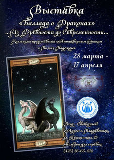 «Баллада о Драконах»В выставочном зале Приморского краевого центра народной культуры во Владивостоке (ул. Пушкинская, 25) состоялось торжественное открытие выставки "Баллада о Драконах", представленная антикварным бутиком "Во имя Надежды". На открытии побывала корреспондент газеты Приморского регионального отделения Союза машиностроителей России. Кто он – дракон? Каким Вы представляете его себе: добрым или злым, преданным или отчуждённым, красивым или ужасным? Такой многоликий, противоречивый и далекий. Так почему он является символом, орденом, гербом многих стран и государств? Драконы присутствуют в легендах народов всего мира и обладают магическими и духовными свойствами. Культуры Восточной и Юго-Восточной Азии наделяют драконов различными добродетелями. Они символизируют высшую духовную силу, дух перемен, ритмы природы, плодородие, мудрость и активность, а на Западе – источник зла, воплощение разрушительной силы, они – чудовища, которых должен победить герой. В любом случае, дракон – излюбленный персонаж писателей и художников. Его изображения прослеживаются ещё с первобытных времён и до нашего времени. Выставка "Баллада о Драконах" приблизит вас к разнообразию образов этого мифического существа и легенд, сложенных о нем. Здесь собраны экспонаты из фарфора, камня, стекла, коллекция украшений с изображением дракона, а также бронзовые и латунные скульптуры, привезенные изо всех уголков мира – от антиквариата до современности. На выставке также широко представлена коллекция декоративно-лиственных растений: узамбарские фиалки (сенполии), стрептокарпусы, бегонии, колумнеи, колерии, глоксинии, ахименесы. Многочисленные виды этих загадочных и нежных цветов дополняют экспозицию выставки. «Прогресс Приморья», № 12 (525) от 29.03.2019 г. |