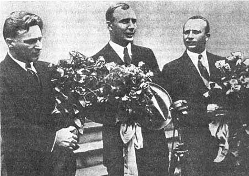 Там, за облаками…Окончание. Начало в № 29 Гидросамолёт Григоровича прослужил в русской авиации до 1921 года. Это была летающая лодка М-5, двухместный биплан с полётным весом 660 кг, из которых 300 кг — полезная нагрузка. Он развивал скорость 128 км/час, имел потолок 4450 метров и продолжительность полёта 5 часов. 24 декабря 1913 года состоялся первый полёт русского четырёхмоторного самолёта "Илья Муромец" авиаконструктора Игоря Сикорского. Это был первый в мире бомбардировщик, имевший на вооружении пушку и бомбовую нагрузку свыше 700 кг. Мощность его четырёх двигателей равнялась 600 л. с., что позволяло развивать скорость более 100 км/час с полезной нагрузкой 1500 кг. Оснащение "Ильи Муромца" компасно-навигационным оборудованием положило начало компасному самолётовождению. И таких примеров было немало, российская авиация стремительно набирала обороты. Если говорить о практическом применении воздушных машин в Европе, то стоит отметить пассажирские рейсы вначале между городами, а затем и между континентами. Заметим, что порой на Западе полёты превращали в шоу, объявляя большие гонорары победителю. Организаторы гарантий не давали, жизнь пилотов не страховали, поэтому смельчакам приходилось надеяться только на себя. Кому-то везло, кому-то нет. Например, в 1910 году состоялось первое состязание в скорости между аэропланом и паровозом. Победила воздушная машина, а её пилот Глен Кертис получил приз в 10000 долларов. Это было целое состояние. Ему, можно сказать, повезло. Затем такие соревнования вошли в практику, аэропланы состязались в скорости с катерами и моторными лодками, автомобилями и мотоциклами. Впрочем, побеждала всегда авиация. Заметим, что авиация интересовала не только профессионалов, но и любителей. Американский мультимиллионер Говард Хьюз был владельцем "Голливуда", выпустил в прокат несколько кассовых картин, за что получил "Оскара". И принялся изобретать самолёт собственной конструкции. Машину он построил, но поднять её в воздух так и не смог. И вообще практически все полёты заканчивались неудачей. По крайней мере, три самолёта разбились вдребезги, но пилот выжил. Природная сила заставляла после многочисленных переломов снова и снова подниматься Хьюза в небо. В 1935 году его машина развила небывалую тогда скорость — 567 км/час, а в 1936 году он участвует в межконтинентальном перелёте и кругосветке. Его компания "Хьюз Эйркрафт" во время Второй мировой войны стала главным поставщиком авиационных деталей и основных вооружений американских ВВС. После войны компания выпускала сверхскоростные ракеты, радары, оборудование космической связи. Однако вернёмся в 30-е годы прошлого столетия. Авиаторы разных стран продолжали соревноваться между собой, преподнося миру то один, то другой авиационный сюрприз. В 1933 году два британских самолёта-биплана фирмы "Вест-лэнд" совершили такой полёт. Экипажи выполняли перелёт в кислородных масках и меховой одежде. 6-9 февраля того же года пилот Джим Моллисо, взлетев из Лимпни (Кент), совершил беспосадочный перелёт из Тиза (Сенегал) в Наталь (Бразилия). Он впервые выполнил перелёт из Англии в Южную Америку одним рейсом. 15-22 июля американец Вилли Пост совершил кругосветное путешествие по воздуху. Взлетев и приземлившись в Нью-Йорке, он преодолел в общей сложности 25099 километров над морями, горами и равнинами, но с одной су