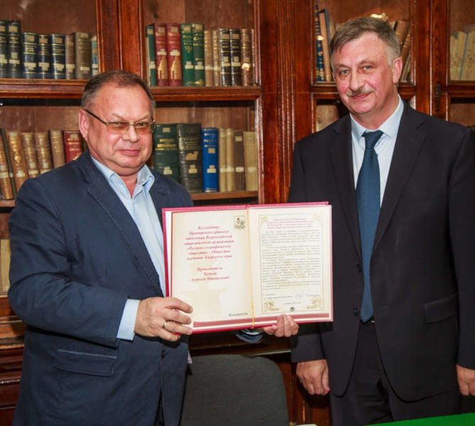 «Записки Общества изучения Амурского края»В Приморском краевом отделении Русского географического общества – Обществе изучения Амурского края состоялось торжественное заседание Совета ПКО РГО – ОИАК, посвященное 130-летию "Записок Общества изучения Амурского края" и выходу в свет юбилейного, 45-го, тома. В заседании приняли участие исполняющий обязанности главы города Владивостока С. Р. Шерстюк, епископ Уссурийский, викарий Владивостокской епархии владыка Иннокентий, генеральный консул США во Владивостоке Майкл Кийс, представители архивов, библиотек и музеев города, члены Русского географического общества, в числе которых – члены Приморского регионального отделения Союза машиностроителей России, горожане, неравнодушные к краеведению, географии и истории родного края. На заседании выступили председатель ПКО РГО – ОИАК А. М. Буяков, сотрудники библиотеки ПКО ПГО – ОИАК, редактор и авторы 45‑го тома "Записок ОИАК", почетные гости. Исполняющий обязанности главы города Владивостока С. Р. Шерстюк торжественно вручил председателю ПКО РГО – ОИАК А. М. Буякову приветственный адрес. В рамках мероприятия прошла церемония вручения памятных знаков Приморского края "80 лет со дня образования Приморского края, 1938–2018 годы". СПРАВКА "ПП"В декабре 2018 года старейшему периодическому научному изданию Дальнего Востока – "Запискам Общества изучения Амурского края" – исполняется 130 лет. С 1888 года выпусками "Записок" были охвачены практически все отрасли знаний: география и этнография, археология и история, геология и биология, гидрография и статистика. В октябре 2018 года в свет вышел юбилейный – 45-й – том "Записок ОИАК". Он посвящен 130-летию издания и приурочен к 80-летию со дня образования Приморского края. Том включает в себя биографические статьи о краеведах, результаты исследовательской и поисковой деятельности, информационные сообщения, отчеты о работе, охватывающие широкий круг вопросов, связанных с Приморьем. «Прогресс Приморья», № 45 (507) от 16.11.2018 г. |