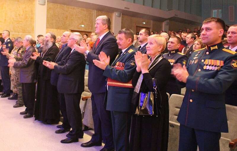 «За Русь, за Родину – едины!»В Арсеньеве на сцене Дворца культуры "Прогресс" состоялись торжественное собрание и праздничный концерт, посвященные Дню защитника Отечества, в рамках которого свои заслуженные награды получили работники ПАО "ААК “ПРОГРЕСС”", лидирующего предприятия Приморского регионального отделения Союза машиностроителей России, – ветераны локальных войн. Праздничную атмосферу накануне этого события создавали рисунки учащихся художественной школы, посвященные Дню защитника Отечества, размещенные в холле экспонаты музеев войсковых частей и музея истории города Арсеньева, звуки духового оркестра. Про традиции в этот предпраздничный день в зале дворца собрались ветераны всех поколений, представители войсковых частей, юноши – будущие призывники, представители трудовых коллективов и общественных организаций города. Со словами поздравлений к участникам торжественного собрания обратился врио главы Арсеньевского городского округа Владимир Сергеевич Пивень. Владимир Сергеевич вручил благодарности главы Арсеньевского городского округа ветеранам боевых действий, работникам предприятий города – за активную гражданскую позицию, личный вклад в патриотическое воспитание, участие в общественной жизни города Арсеньева и в честь Дня защитника Отечества. Среди награжденных – начальник поисково-спасательной и парашютно-десантной службы Авиационно-спортивного клуба Регионального отделения ДОСААФ России "Арсеньевский" Сергей Алексеевич Ананьев; ветеран боевых действий Вадим Владимирович Боровков; слесарь по ремонту и обслуживанию систем вентиляции и кондиционирования авиационной компании "Прогресс", ветеран боевых действий Федор Федорович Зацаренко; директор Авиационно-спортивного клуба Регионального отделения ДОСААФ России "Арсеньевский" Александр Васильевич Коляда; заместитель командира отряда ДНД "Молодая гвардия" колледжа ДВФУ Василий Ильич Шереметьев; слесарь-испытатель испытательной лаборатории авиационной компании "Прогресс", ветеран боевых действий Владимир Васильевич Шкода; ведущий специалист комиссии по делам несовершеннолетних и защите их прав Администрации Арсеньевского городского округа Александр Евгеньевич Шумко; ведущий инженер по эксплуатации воздушных судов авиационной компании "Прогресс" Александр Борисович Юрасов; специалист МОБУ "Учебный методический центр" Марина Александровна Панченко. За многолетний добросовестный труд, высокий профессионализм, инициативу и в честь Дня защитника Отечества Благодарность главы Арсеньевского городского округа объявлена командиру батальона войсковой части 98648 подполковнику Алексею Владимировичу Белому. С Днем защитника Отечества поздравил ветеранов всех поколений, всех, кто сегодня стоит на страже рубежей России председатель Думы Арсеньевского городского округа Анатолий Михайлович Щербаков. За многолетний добросовестный труд, активную гражданскую позицию и в честь Дня защитника Отечества Благодарностью Думы Арсеньевского городского округа награждены начальник отделения военного комиссариата города Арсеньева, Анучинского и Яковлевского районов Евгений Иванович Жиненко, помощник начальника отделения военного комиссариата города Арсеньева, Анучинского и Яковлевского районов Григорий Витальевич Тасун. За активное