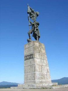 Знамя на сопке Крестовой…Стоит на сопке Крестовой монумент: солдат в плащ-палатке, в ладонях древко с флагом. Хасанцы и многочисленные туристы обязательно приходят сюда, возлагают цветы, фотографируются и не догадываются, что прототипом этого воина стал Герой Советского Союза Иван Никонович Мошляк. Именно он в тревожном 1938 году водрузил на вершине сопки красный стяг. Когда страна готовилась к пятидесятилетию хасанских событий, в одной из воинских частей ДВО военнослужащие развернули активную поисковую работу. Возглавил тогда это движение капитан Ефимченко. События разворачивались не совсем обычным образом. Директив сверху не поступало, всё случилось, с одной стороны, спонтанно, с другой, – закономерно. Началось всё с трофейного японского палаша. Его обладателем был, как позже выяснилось, старшина сверхсрочной службы, кавалер ордена Красной Звезды хасанец И. М. Канин. В то время Ивана Моисеевича в живых уже не было, но родственники и, в частности, племянник, проживающий в посёлке Краскино, всегда помнили о нём. Он занимался починкой крыши и случайно обнаружил на чердаке дядин трофейный палаш. Пообещал тогда передать находку в комнату боевой славы полка… Комната боевой славыМежду тем комната боевой славы превратилась в небольшой музей. На письма, которые рассылали военнослужащие родственникам участников событий у озера Хасан, откликались охотно. Особо порадовал ответ Александры Григорьевны Каниной, которая проживала в Ленинграде (сегодня – Санкт-Петербург. – ред.). Она прислала письмо и фотографию мужа. Александра Григорьевна указала около десяти фамилий сослуживцев Ивана Моисеевича, воевавших с самураями в 1938-м. Актив комнаты боевой славы наладил переписку практически со всеми, кого назвала Канина. Жена Владимира Ефимченко Екатерина, школьная учительница, помогала на общественных началах, сегодня такое подвижничество называют волонтёрством. Ей помогали старший сержант Олег Тимофеев, сержант Анатолий Дорофеев и рядовой Андрей Богайчук. Благодаря их усилиям в восьмидесятые годы прошлого столетия удалось разыскать многих героев Хасана. Комната боевой славы части пополнилась тогда фотографиями, письмами, воспоминаниями ветеранов тех событий. Так был найден Пётр Фёдорович Фефилов, который спустя сорок лет, благодаря поисковикам, побывал в своём родном подразделении. О том дне осталось фото, на котором он запечатлён за настройкой радиостанции. И не случайно, на Хасане Фефилов обеспечивал связь и был командиром радиовзвода, комсоргом роты связи. Фефилов прямо у монумента "Героям Хасана" на сопке Крестовой рассказывал поисковикам о комсомольском собрании накануне боя. Владимир Ефимченко записал голоса бойцов стрелкового полка П. Ф. Фефилова, П. В. Руденко, А. И. Чернявина и других. Ему удалось пополнить комнату боевой славы наградами хасанцев, в частности, родственники Канина передали на хранение орден Красной Звезды Ивана Моисеевича. И вообще, капитан Ефимченко задумал в тот период снять любительский фильм о преемственности традиций героев-хасанцев в делах воинов восьмидесятых. Заручившись письмом командования полка об инициативе присвоения одному из теплоходов ДВМП имени Героя Советского Союза Ивана Мошляка, капитан Ефимченко представил историческую справку о жизни и деятельности Ивана Никоновича в музей Ти