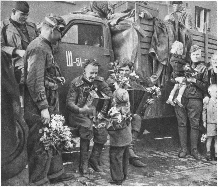 Бой после победыОкончание. Начало 27 апреля Было ясно, что советские войска, которыми командовал генерал Конев, не позволят нацистам устроить в Праге "второй Берлин". Однако сопротивлялись немцы отчаянно. Красная Армия ускоренными темпами спешила на помощь восставшей столице Чехии, где люди гибли по причине плохого вооружения. Власовцы во избежание путаницы получили бело-сине-красные нарукавные повязки и начали действовать. 6 мая они блокировали военный аэродром и другие места скопления живой силы и техники немцев, перекрыли подходы к Праге, куда выдвинулись отборные части СС. Артиллерия нанесла несколько ударов по местам сосредоточения крупных отрядов немецкого гарнизона. Начались жаркие уличные бои. Шёрнер не ожидал такого сопротивления и бросил в бой ещё большие силы. Трудно сказать, как закончились бы боевые действия, не приди на помощь участникам сопротивления советские войска. 4 мая американский главком Эйзенхауэр отправил в Москву сообщение, в котором говорилось, что его войска начинают движение в направлении реки Влтавы. Это означало, что американцы собираются занять половину Праги. Конев, координировавший движение советских войск, торопил подчинённых. Нужно было опередить американцев. Их присутствие облегчило бы задачу и нацистам, и власовцам, которые надеялись укрыться под сенью США. И Конев успел. Под Брно и Оломоуцем наши войска вступили в бой с марша и встретили плотный огонь врага. Полевые части прикрывала авиация, артиллерия, таковые соединения переходили в контрнаступление. Части СС, твёрдо решившие сдаться союзникам, а не Красной Армии, оказывали серьёзное сопротивление. Несмотря на то что наступление продвигалось медленно, 53-я армия стремительно вышла к Йиглаве и рассекла фронт надвое. Перед Шёрнером замаячила перспектива "котла". В Праге восставшие тоже отвоёвывали улицу за улицей и вооружались трофейным оружием. Костяк сил Национального совета состоял теперь из бывших чешских военнослужащих. В услугах власовцев они больше не нуждались и, не желая компрометировать себя в глазах руководства СССР, принудили к отступлению. Им было предложено покинуть Прагу. Буняченко понял, что дела плохи, и увёл войска в направлении американской зоны оккупации. Впрочем, власовцы потеряли в пражских боях до 500 человек, когда восставшие чехи – около 2000, гитлеровцы – около 3000 человек. Шёрнер искал выход из окружения, он приказал своим частям оторваться от преследования советских войск и пробиваться на запад. Все разговоры о капитуляции он назвал вражеской дезинформацией. 7 мая ему помогли американцы, они сообщили восставшим чехам, что готовится общая капитуляция Германии, и в связи с этим предлагали прекратить сопротивление. Миллионная группировка Шёрнера могла при таком раскладе просочиться в американскую зону оккупации, но возразили горожане. Они согласились пропустить немцев, но без тяжёлого вооружения. На севере, в Рудных горах, фашисты не успели создать сплошной линии обороны, но это не облегчило наступление 1-го Украинского фронта. Немцы получили приказ действовать мобильными боевыми группами. Это были соединения от усиленной роты до усиленного полка. Стратегия вермахта сводилась к тому, чтобы создать части с меньшим количеством живой силы, но с большей огневой мощью. Упор делался на моторизованные части, у