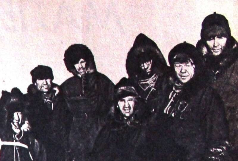 Семеро смелыхДва с половиной месяца за ними следил весь мир. С 16 по 31 марта 1979 года семеро отважных шли к полюсу. И первыми на планете Земля достигли его – на лыжах. Вот их имена: Дмитрий Шпаро, Владимир Леденев, Анатолий Мельников, Владимир Рахманов, Юрий Хмелевский, Василий Шишкарев и врач Вадим Давыдов. Открытое, обожжённое полярным солнцем и арктическими ветрами лицо. На слегка обмороженных ладонях – мозоли, следы недавнего похода. И только. В остальном – обыкновенный гражданин, ничем не отличающийся от десятков прохожих, с которыми сталкиваешься за день. – Что же заставило вас преодолеть полторы тысячи арктических километров? – спрашивала после возвращения с полюса корреспондент газеты Э. Гусева врача экспедиции В. А. Давыдова. – Мечта о полюсе, об Арктике. Я родился и вырос на Урале. Учился в I Московском медицинском институте имени И. М. Сеченова. В студенческие годы совершал походы по Кольскому полуострову, Карелии. После окончания института некоторое время работал в самом северном аэропорту страны, на Земле Франца-Иосифа. Север притягивал как магнит. Мечта стала целью, когда я узнал из "Комсомольской правды" о группе Дмитрия Шпаро. Я тотчас же ему позвонил… Будущему руководителю высокоширотной полярной экспедиции свою биографию Давыдов поведал кратко: врач, заядлый турист, работал в Арктике, женат, двое детей, жена – тоже медик, бывшая однокурсница и тоже туристка. – Значит, возражать против путешествий не будет, – заметил Шпаро. – А как тренировки, выдержите? – Так ведь у нас одна цель – Северный полюс… И начались тренировки. – Первый длительный пробег – от станции метро "Киевская" до "Академической" и обратно – я осилил с таким трудом, что дома меня не узнали: зверски устал и сразу осунулся. Но иначе и быть не могло, я не был готов к таким нагрузкам, хотя прежде и делал зарядку по утрам и даже изредка бегал. Лишь со временем настойчивые занятия под руководством нашего тренера Фёдора Склокина помогли мне, как и остальным, обрести необходимую форму. Будущие участники экспедиции занимались упорно. Три раза в неделю, например, бегали по двадцать километров. Особенно тяжело было по субботам: дома ждали дети, надо было с ними почитать, вместе погулять… – Опять побежишь? – с огорчением спрашивала младшая, Женя. Старшая, Оля, уже школьница, успокаивала сестрёнку: у всех дети, у дяди Юры – трое, у других – по двое, и все терпеливо ждут своих пап. – Именно обстановка понимания, царившая в семье, помогла мне справиться с нагрузками, выдержать первые испытания на выносливость. В 1975 году я участвовал в традиционном пробеге МГУ, затем ходил на лыжах по Таймыру, прошёл от острова Врангеля до дрейфующей станции "СП‑23", был участником марафонской эстафеты в честь 60-летия ВЛКСМ. Все эти годы тщательно подбиралась экипировка и снаряжение для будущего похода: штормовые костюмы и бахилы, спасательные жилеты, лыжи, маленькие лодки и ледорубы, необходимые приборы. Там, где не чувствовали себя специалистами, обращались за помощью в различные организации и нигде не встречали отказа. Например, рацион питания для группы разработали в Институте питания АМН СССР. Специальные защитные очки по рекомендации объединения "Медтехника" изготовили на предприятии Минмедпрома СССР. И всё это затем прошло через придирчивые руки завхоза и комсорга экспедиции 