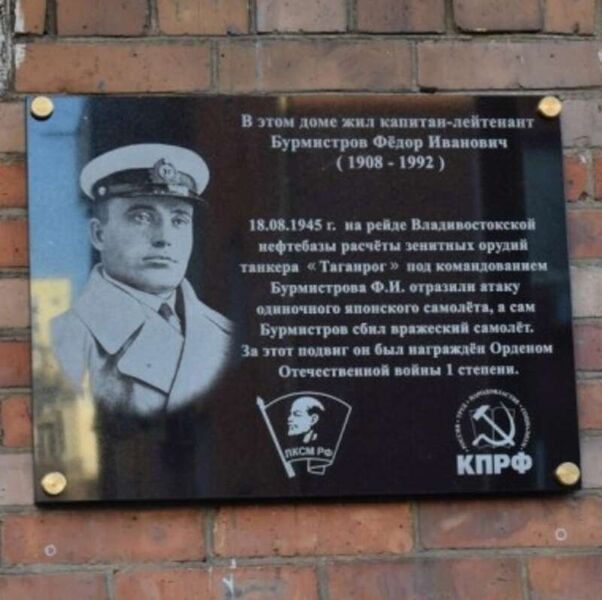 Последний полёт камикадзеБлагодаря слаженным и смелым действиям моряков танкера "Таганрог" была остановлена атака японского летчика-смертника. Это был единственный вражеский самолет, которому удалось прорваться в окрестности Владивостока в период Второй мировой войны. Короткий бой произошёл в 1945 году. Японский бомбардировщик атаковал танкер "Таганрог" в районе Первой речки. Незадолго до этого "Таганрог" под командованием капитана К. А. Зайцева доставил во Владивосток груз жидкого топлива, необходимого для кораблей Тихоокеанского флота и фронта. После слива нефтепродуктов танкер стал на рейде в районе нефтебазы на Первой речке. Поблизости стояли на якорях два других танкера – "Батуми" и "Апшерон". В полдень 18 августа 1945 года вахтенный матрос С. П. Росляков заметил между облаками, с правого борта, летящий на большой скорости самолет. По сигналу боевой тревоги моряки немедленно заняли свои боевые посты у орудий и зенитных пулеметов. По команде военного помощника Бурмистрова боевые расчеты электрика Лещенко и матросов Кулика, Кобызева и Мурзы открыли заградительный огонь из зенитных пулеметов. Самолет свечой взмыл в небо. Набрав высоту и развернувшись, он снова начал заходить на танкер, открыв огонь по судну. Моряки ответили встречным огнём судовых пулеметов. Очередь капитан-лейтенанта Бурмистрова из "эрликона" поразила воздушную цель. Самолёт, охваченный огнём, рухнул в воду в нескольких десятках метров от танкера. Падая, машина перебила своим крылом одну из радиоантенн, натянутых между мачтами "Таганрога". На месте падения на поверхности воды появилось большое огненное поле, угрожающее судну: могли взорваться недегазированные танки. В этой экстренной ситуации экипаж "Таганрога" действовал слаженно и смело. Палубная команда мощными струями воды из четырех пожарных шлангов сдерживала огонь, подступающий к борту. Руководил во время и после боя палубной командой старпом Виктор Сахаров, в дальнейшем один из самых прославленных капитанов Дальневосточного морского пароходства, Герой Социалистического Труда, лауреат Государственной премии СССР. Машинной командой на "Таганроге" руководил один из лучших старших механиков пароходства Константин Иосифович Поверов, впоследствии кавалер ордена Ленина и ведущий механик-наставник ДВМП. Со дна Амурского залива была поднята кабина с японским летчиком-камикадзе и другие детали самолета. При проверке у летчика были обнаружены документы, из которых установлено, что звали его Циохоро Иосиро. В полетной книжке подпоручика японской армейской авиации было указано задание: "Задача – нанести таранный удар на полном ходу при скорости 550 километров в час. До последнего момента, не закрывая глаз, хорошо прицелившись, нанести удар прямо в трубу или мостик. Если нет кораблей, то выбрать в городе самый большой дом. В случае обстрела зенитной артиллерией или встречи с вражескими истребителями помахать крыльями, выпустить шасси и, сделав ложные знаки о сдаче, продолжать выполнять задание – нанести таранный удар по самому большому кораблю в порту Владивосток". Необходимо отметить, что это был единственный вражеский самолет, сумевший прорваться к Владивостоку за время военных действий. В данном случае моряки торгового флота проявили высокую бдительность и боевое мастерство и, как сказал в сво