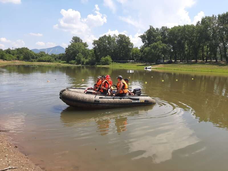 В Арсеньеве прошёл молодёжный праздник в честь Дня ВМФНакануне Дня Военно-морского флота России состоялся традиционный День Нептуна на берегу акватории городского парка "Восток". Уже несколько лет организатором этого праздника выступает председатель ДОСААФ г. Арсеньева Андрей Иванович Богатырёв при финансовой поддержке руководства ПАО "Аскольд", при содействии управления образования администрации Арсеньевского городского округа, активном участии Приморского регионального отделения Союза машиностроителей России и Совета молодёжи ПАО "Аскольд" под руководством М. Б. Козинцевой. Праздник начался с приветствия участников и зрителей царём морей Нептуном, прибывшим на лодке в сопровождении русалок. На протяжении всего мероприятия проходили весёлые игры и конкурсы для детей. В программу праздника вошли соревнования моделей радиоуправляемых катеров и боевых кораблей, преодоление комплексной полосы препятствий "Тропа разведчика – морской десант". Засушливая погода внесла свои коррективы в организацию праздника. Организаторы придумали провести для детей и молодёжи праздник в виде соревнований по преодолению комплексной полосы препятствий "Тропа разведчика" с имитацией загрузки десанта в резиновую надувную лодку. Состязание проходило на территории верёвочного городка парка "Восток", где детям было предоставлено его бесплатное посещение. Такой подарок ребятишкам презентовала компания "Актив-Парк" под руководством В. А. Барановской. Но, к счастью, накануне прошёл проливной дождь и наполнил чашу бассейна в городском парке "Восток", и организаторы праздника приняли решение – на радость детям – совместить водную и сухопутную части. Таким образом получилось интересное увлекательное приключение "Тропа разведчика – морской десант" – испытание интеллекта, силы, ловкости, выносливости и веры в победу. По легенде, группа морского десанта на боевом корабле (радиоуправляемая модель боевого корабля) должна совершить противолодочный маневр (зигзаг) и высадить на большой надувной лодке с мотором АТГ "антитеррористическую группу морского десанта" для скрытного проникновения на охраняемый объект – "базу террористов". Далее бесшумно проникнуть на объект и "снять часового" бесшумной стрельбой из лука (этап "Стрельба из лука по мишеням"). Затем нужно было подготовить оружие и экипировку спецназа (этап "Оружие спецназа"): АКСУ, СВД-С, АК‑74, АК‑105, винтовку М‑24. Потом разбить в лесу свой лагерь и поставить для ночёвки палатку (этап "Установка палатки командой"). При этом возможно было усиление группы воздушным десантом (этап "Воздушный десант": укладка, ознакомление с парашютом, надевание и подгонка подвесной системы). После этого необходимо было по верёвочному городку пройти "разрушенный мост" разными способами: натяжной трос, верёвочная лестница, подвесное бум-бревно (этап "Разрушенный мост") – и "освободить заложника" в домике администратора парка. И в завершение спецоперации – отражение нападения на "разведгруппу"/АТГ (этап "Огневой рубеж" – одиночная или групповая командная стрельба 5 человек из точных копий оружия АК‑47 пластиковыми пульками "Лимонти-тир"). При проведении соревнований по моделям и катерам первыми на пирс для старта радиоуправляемых моделей катеров вышли представители детских садов города – 5 команд по 2 экипажа. В