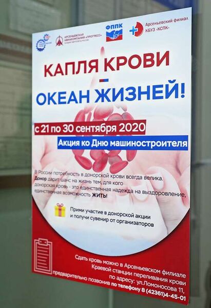 В Арсеньеве проходит донорская акция ко Дню машиностроителяС 21 по 30 сентября в Арсеньеве проходит уже ставшая традиционной донорская акция "Капля крови – океан жизней", приуроченная к празднованию Дня машиностроителя. Организаторами данной акции выступают Общероссийская общественная организация "Союз машиностроителей России", Арсеньевская авиационная компания "Прогресс" им. Н. И. Сазыкина, Первичная профсоюзная организация предприятия и Арсеньевский филиал Краевой станции переливания крови. Главными целями акции являются поддержка и развитие донорского движения, увеличение количества доноров в городе и вовлечение молодёжи. В акции участвуют как сотрудники авиакомпании "Прогресс", так и жители города Арсеньева, а также близлежащих населённых пунктов. Все участники акции получают денежную компенсацию на питание и справку на 2 дня отдыха, положенные всем донорам, а также памятные сувениры: магниты, блокноты и ручки с символикой акции, за что выражают искреннюю благодарность организаторам. Безусловно, эти люди готовы спасать жизни и без каких-либо подарков, но ведь внимание всегда приятно. Отметим, что ежегодно в Арсеньеве кровь сдают около 470 человек: кто-то сдает один раз, а кто-то – до 4-5 раз в год. Кроводач, таким образом, в Арсеньевском филиале Краевой станции переливания крови насчитывается порядка 1200-1400 в год. Филиал обеспечивает компонентами крови Арсеньевскую городскую больницу, центральные районные больницы сел Чугуевка, Анучино и Яковлевка. Всего на сегодняшний день в Арсеньеве зарегистрировано более 500 доноров, 75 % из них – работники авиакомпании "Прогресс" и члены Союза машиностроителей России. Кроме того, более 70 бывших и нынешних авиастроителей награждены нагрудным знаком и имеют звание "Почетный донор России". Сегодня Арсеньевская авиационная компания "Прогресс", являясь социальным партнером и гарантом поддержки доноров, стоит на страже здоровья своих работников. Как отмечают сами доноры, в медико-санитарной части предприятия они могут своевременно пройти медицинский осмотр, что существенно помогает следить за своим здоровьем и своевременно предоставлять справки о его состоянии на станцию переливания крови. Со стороны работодателя донорам обеспечиваются все предусмотренные гарантии, а также предусматриваются различные поощрения. «Прогресс Приморья», № 30 (593) от 25.09.2020 г. |