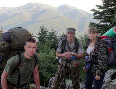 Гора ОльховаяПутевые заметки из личного архива "Прогресс Приморья" продолжает публикацию материалов о неповторимых красотах нашего уникального края и покорении молодежью авиакомпании "Прогресс", члена Приморского регионального отделения Союза машиностроителей России, горных вершин необъятных отрогов величественного Сихотэ-Алиня. В Партизанском районе Приморского края, богатом на природные объекты, расположена одна из наиболее высоких гор Приморья — гора Ольховая. Высота горы составляет 1669 метров над уровнем моря, вершина находится в центре Партизанского хребта, который является южной оконечностью хребта Сихотэ-Алинь. По всей видимости, Ольховая представляет собой потухший вулкан, о чем красноречиво говорит плато с ложбиной, которое находится в сотне метров от самой вершины горы. Уникальность Ольховой состоит еще и в том, что на этом плато на высоте порядка 1600 метров над уровнем моря расположены несколько озер — одно большое и два совсем небольших. Если маленькие озера часто пересыхают — в периоды длительного отсутствия осадков, то большое, которое имеет размеры примерно 30 на 80 метров, не пересыхает никогда. Подниматься на эту уникальную гору пришлось в начале августа, когда природа находилась в расцвете своей буйной красоты. Зеленый лес, мягкая трава, теплая вода в реках... Автобус доставил нас до деревни Монакино в пять часов утра. Выгрузившись, мы привели себя в порядок после бессонной ночи в жестком автобусе, проверили снаряжение, поудобнее закрепили рюкзаки и двинулись по проселочной дороге к основанию горы, до которой было около 20 километров. Дорога была ровной, без крутых подъемов, и идти по ней было довольно легко. Весело болтая, мы прошли пару часов, после чего решили остановиться на привал. На небольшой газовой плитке быстро согрели воды, заварили чай и, подкрепившись запасенными бутербродами, двинулись дальше. Короткий отдых позволил не только отдохнуть, но и поправить снаряжение, наклеить пластырь на натертые ноги, в общем, восстановить способность к передвижению. В течение последующих трех часов движения на пути пару раз попадались мосты через реку Алексеевку — довольно прочные, выполненные из тяжелого кругляка, очевидно, способные выдержать даже груженые лесовозы. Но примерно за семь километров до подножия Ольховой нам попался разрушенный мост. Джипы и большие грузовики могли пересечь здесь реку вброд, а для мелких машин на этом месте дорога заканчивалась. Объявили небольшой перекур, и как же было приятно окунуть распаренные ходьбой ноги в холодную воду чистейшей горной реки! Здесь нам впервые встретились змеи — это были обыкновенные гадюки, которые, завидев нас, стремились как можно быстрее убраться восвояси. Наиболее резвые кинулись фотографировать змей, но те, очевидно, не поняв смысла предстоящей процедуры, уползли за камни. Подножие горы мы определили по небольшому, едва заметному отвороту в сторону от основной дороги и... по спутниковому навигатору, который уверенно и безапелляционно приказал нам повернуть влево и пройти еще сто метров. Что мы и сделали. Оказалось, что здесь уже давно вытоптана большая поляна, с которой туристы стартуют на штурм Ольховой. Сняв тяжелые рюкзаки, мы расстелили тент и на скорую руку приготовили нехитрую пищу — запарили лапшу, вскрыли несколько банок консервов, 