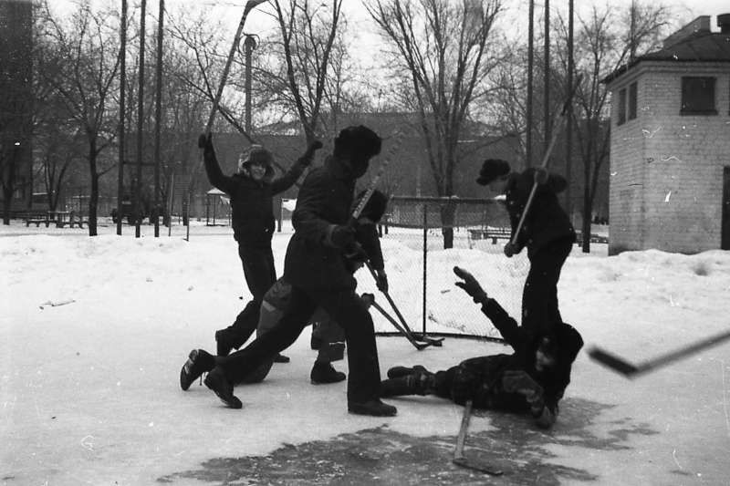 А у нас во дворе…Поколению начала 70-х годов прошлого века, воспитанному на примерах подвигов дедов, прошедших фронтовыми дорогами до Берлина, пришлось пережить так называемый застой, якобы накрывший большую страну, которой на картах уже нет. И всё же у этого поколения, при всех идеологических "измах", было будущее. Впрочем, нам, молодым парням и девушкам тех незабываемых лет, существующее время застойным отнюдь не казалось. Жизнь в полном смысле слова бурлила, наша энергия била через край. Не скажу, что все стремились в авиацию, как в 30-е годы, или мечтали бороздить космическое пространство, как в 60-х, но у каждого было главное – стабильность, которая позволяла строить планы на будущее. Каждый знал, что в итоге он получит жильё и обзаведётся семьёй, родит детей и в дальнейшем станет заботиться о будущем внуков. И в этом не было ничего плохого, однако кого-то не устраивала такая жизнь, вот вам и термин придумали. Никто не отрицает, что будущее у большинства юношей было похожее. Школа, служба в армии или на флоте (обязательно), "дембель", институт или университет, впрочем, в случае недобора баллов, предлагались те факультеты, где были свободные места. Демобилизованных уважали, доверяли им общественные должности, например, комсорга, старосты группы, профорга, физорга и другие. Стоит заметить, что их распределяли по группам равномерно, перемешивая с теми, кто поступил в вуз после окончания десятилетки. Никакого обособления не существовало, жили дружно, выезжали группой на природу, все участвовали в общественных мероприятиях. И самое главное, что жили без зависти, в равных условиях. Возможно, у кого-то было иначе, но в ДВГУ, где довелось учиться, было именно так. Вероятно, это и способствовало тому, что в спортивных соревнованиях мы участвовали не гонимые палкой, чтобы отбыть номер, а по собственной воле. Помню, что накануне перестройки футбольные страсти просто зашкаливали по накалу страстей. Особенно в среде будущих математиков, юристов, филологов и геофизиков. Порой курс мог выставить на турнир по мини-футболу две, а то и три команды. Девчата, понятное дело, активно болели. Вспоминается осень 1994 года, когда филологи пытались внедрить на факультете мини-хоккей с мячом на асфальте, а с первыми морозами перейти на зимний хоккей. Закопёрщиком этой идеи был Игорь Кухарь. Провели даже несколько тренировок, но столкнулись с проблемой защитной экипировки, которая стоила денег и была в большом дефиците. И снова перешли на менее затратный мини-футбол. В городе работали катки, тогда ещё заливали поле стадиона "Динамо", а рядом стояла неплохая хоккейная коробка, вот туда мы и ходили играть в выходные дни. Сегодня в Приморье много возможностей заниматься хоккеем с шайбой по нескольким причинам. Во-первых, власти всех уровней не жалеют средств на строительство, ремонт и заливку хоккейных коробок, сеть спортивных магазинов в полной мере обеспечивает желающих в целом недорогими клюшками, шайбами, щитками. Однако полное хоккейное защитное облачение всё же по карману не всем. Как говорится, цены кусаются. Пожалуй, эта проблема существовала и в советское время, отчего полноценно заниматься хоккеем не представляется возможным. Даже несмотря на то что повсеместно проводятся турниры по дворовому хоккею "Золотая шайба" и другим, охват оставляет желать лучшего. И 