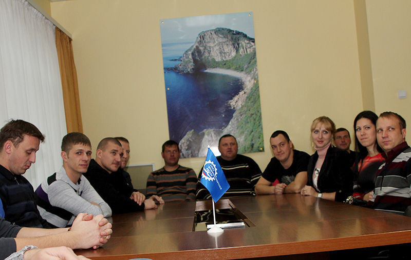 Поездка на ДВЗ "Звезда"Представители аппарата Приморского регионального отделения Союза машиностроителей России, выполняя обещание — наградить медалями за второе место на VI слете спортивные коллективы заводов "Прогресс"и "Звезда"— ранним утром 14 ноября отправились в путь. Кстати, не только для вручения наград, но и по другому, не менее значимому поводу. Курсом — на Большой Камень!Как несложно догадаться, цели командировки были самыми мирными: предстояло торжественное вручение наград "серебряным"призерам, проявившим себя на соревнованиях машиностроителей с лучшей стороны, а в отдельных видах выступившим просто блестяще (!), а также фото— и видеоотчетов спортивных баталий и сувениров. Кроме того, в планах было вручение членских билетов и значков "новообращенным"членам ПРО СМР. Забегая вперед, скажем, что команда завода "Прогресс"получила свои положенные награды чуть раньше, также сразу скажем, что команда "Звезда"оставалась на маршруте последней. И мнение о том, что встреча на заводе превзошла все ожидания, оказалось, как всегда, верным. Нам, то есть гостям, пришлось некоторе время подождать. Причина проста — огромный завод жил и работал, поэтому попасть на прием к директору предприятия оказалось делом непростым. Тут же завязался непринужденный разговор представителей аппарата ПРО СоюзМаш Александра Басова и Михаила Ясько с заместителем директора Владимиром Антошиным и редактором заводской газеты Инной Мамушкиной. Не откладывая "на потом", здесь же, в просторной приемной, состоялось торжественное вручение исполняющему обязанности главного инженера завода Алексею Степанову удостоверения члена Союза машиностроителей России. Это пусть и отдаленно, но напомнило не раз виденное в фильмах про войну вручение партбилетов на передовой. Получилось по-домашнему и по-своему символично — принятие в ряды "союзмашевцев"прямо на рабочем месте, в буквальном смысле. Это "цеховое"вручение стало своеобразным прологом дальнейших событий. У директора…Совещание у директора закончилось, и нас пригласили в кабинет. Диалог оказался по-производственному коротким и информативным. Александр Басов представил нас генеральному директору Дальневосточного завода "Звезда"Владимиру Аверину и обозначил цель приезда и план работы делегации. Закончил главным: прибыли "пообщаться непосредственно с членами организации". Дело в том, что в этот день СМР пополнился еще 22 сотрудниками завода, которые прежде не раз участвовали во всех мероприятиях, проводимых Союзом. Вот с ними-то и предстояло общение. Впрочем, отвлекать ребят от работы на долгое время никто не планировал и особо "надоедать"не собирался. Поскольку все формальности и протокол были соблюдены, такое разрешение администрация дала, и делегация им немедленно воспользовалась. Совет молодежи работает!Пока гости общались с руководством предприятия, в кабинете технического директора оперативно собрался Совет молодежи. Подавляющее большинство ребят являются членами спортивной команды — серебряными призерами VI cлета машиностроителей Приморского края. Выступление "Звезды"оказалось на редкость удачным, и смотрелась команда очень и очень достойно, о чем говорит почетное второе место, что является большим успехом. Большекаменцы не только спутали карты соперникам, но и озадачили организаторов 