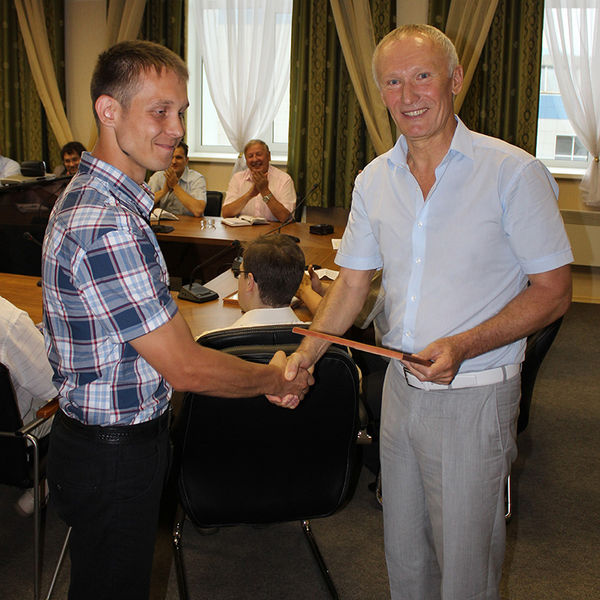 Награды нашли своих героев!Еженедельное совещание руководителей подразделений ОАО ААК "Прогресс" 9 июля было отмечено знаменательным событием – вручением поощрений группе молодых работников предприятия. В их число вошли Елизавета Шлыкова (инженер-технолог цеха № 105) и Андрей Бурлаков (инженер-технолог отдела 513), получившие благодарности "За активное участие в подготовке и проведении III научно-практической конференции "Молодежь XXI века". Напомним, что данная конференция состоялась в апреле этого года при поддержке ОАО ААК "Прогресс", ОАО "Вертолеты России" и Союза машиностроителей России на базе филиала ДВФУ в г. Арсеньеве. Отдельно были отмечены Дмитрий Винничук (техник-технолог отдела 508, студент, руководитель студенческого научного общества филиала ДВФУ в г. Арсеньеве) и Александр Калугин (техник-технолог отдела 508, студент, руководитель студенческого конструкторско-технологического бюро филиала ДВФУ в г. Арсеньеве), которым были вручены благодарности "За успешную и самоотверженную работу по пропаганде научно-технических достижений" за подписью главы АГО Александра Алексеевича Дронина. Ребята получили заслуженные награды из рук управляющего директора ОАО ААК "Прогресс" Юрия Петровича Денисенко и первого заместителя главы АГО Виктора Феодосьевича Бутко, пришедшего лично поздравить молодых специалистов. Александр Калугин, Дмитрий Винничук, Елизавета Шлыкова и Андрей Бурлаков являются яркими представителями активной молодежи авиакомпании "Прогресс", успешно совмещающими учебу, работу и научную деятельность. Поздравляем ребят с очередным признанием заслуг и желаем им новых открытий, побед и достижений! «Прогресс Приморья», № 27 (290) от 10.07.2014 г. |