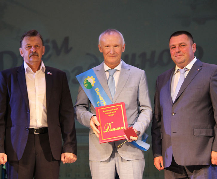 Почётное звание — управляющему директору завода «Прогресс»Авиастроители ПАО ААК "ПРОГРЕСС" встретили День Воздушного флота России высокими трудовыми показателями. Во Дворце культуры "Прогресс" под звуки "Марша авиаторов" собрались заводчане и ветераны предприятия. Среди приглашенных гостей были глава Арсеньевского городского округа Александр Дронин и председатель Думы АГО Александр Коваль. Традиционно День Воздушного флота России работники предприятия начали праздновать с вручения наград и чествования лучших авиастроителей. Глава Арсеньевского городского округа Александр Дронин поздравил заводчан с их профессиональным праздником и вместе с председателем Думы Арсеньевского городского округа Александром Ковалем вручил самую важную награду торжественного вечера управляющему директору Арсеньевской авиационной компании "Прогресс" им. Н.И. Сазыкина, председателю Приморского регионального отделения Союза машиностроителей России Юрию Петровичу Денисенко, удостоив его звания "Почётный гражданин города Арсеньева". За вклад, внесенный в повышение авторитета и престижа Арсеньевского городского округа, Юрию Денисенко также были вручены почетный диплом, лента, удостоверение, нагрудный знак и символический ключ от города Арсеньева. «Прогресс Приморья», № 30 (394) от 25.08.2016 г. |