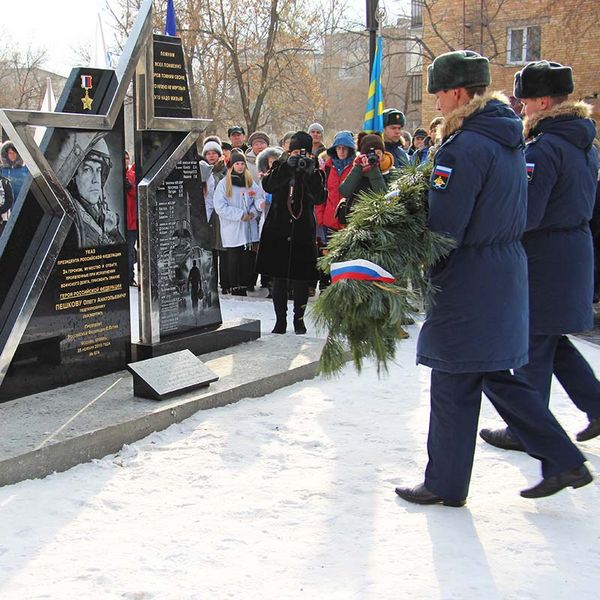Подвиг, увековеченный в гранитеВ День Героев Отечества, который ежегодно отмечается в нашей стране 9 декабря, в городе Арсеньеве состоялось торжественное открытие памятника Герою Российской Федерации подполковнику Олегу Анатольевичу Пешкову, погибшему в 2015 году при выполнении боевого задания в Сирийской Арабской Республике, и летчикам Варфоломеевской войсковой части, погибшим при исполнении служебного долга. Олег Анатольевич Пешков был расстрелян боевиками с земли после катапультирования из подбитого самолета. Ему было всего 45 лет. Указом Президента Российской Федерации Владимира Владимировича Путина Олегу Анатольевичу Пешкову посмертно было присвоено звание Героя России. И хотя Олега Анатольевича похоронили в Липецке, где он жил вместе со своей семьёй в последние годы, его имя тесно связано с городом Арсеньевом. Здесь его семья прожила целых девять лет, и всё это время Олег Анатольевич доблестно служил в Варфоломеевской войсковой части. С 2009 года он продолжал службу уже в Липецке, а в 2015 году был направлен в роковую командировку в Сирийскую Арабскую Республику. Идея увековечить память Олега Анатольевича Пешкова и лётчиков Варфоломеевской войсковой части, погибших при исполнении своих служебных обязанностей, была предложена инициативной группой и личным составом части. Эту идею поддержал глава Арсеньевского городского округа Александр Алексеевич Дронин, а непосредственное участие в создании памятника приняли трудовой коллектив ПАО "Аскольд", возглавляемый Андреем Павловичем Семёновым, и руководитель частного предприятия "Стелла" Андрей Иванович Новак. На открытии мемориала, выполненного в форме двух объединённых звездой стел из чёрного гранита, на одной из которых высечено имя Олега Анатольевича Пешкова, а на другой – имена погибших лётчиков Варфоломеевской войсковой части, собрались офицеры части, жители города, представители различных общественных организаций, школьники, члены Совета молодёжи ПАО ААК "ПРОГРЕСС" и другие неравнодушные сотрудники предприятия. Перед собравшимися участниками церемонии выступили глава Арсеньевского городского округа Александр Алексеевич Дронин, командир Варфоломеевской войсковой части подполковник Сергей Александрович Номоконов, начальник отдела военного комиссариата Приморского края по городу Арсеньеву, Анучинскому и Яковлевскому районам полковник Николай Владимирович Тригубко, председатель Арсеньевского отделения Всероссийской организации ветеранов "Боевое братство", ветеран боевых действий в Афганистане, кавалер ордена Красной Звезды Олег Николаевич Волошенко. Почётное право открыть мемориал было предоставлено главе Арсеньевского городского округа Александру Алексеевичу Дронину и командиру Варфоломеевской войсковой части подполковнику Сергею Александровичу Номоконову. Освятил памятник отец Николай. В завершение церемонии открытия её участники почтили память героев минутой молчания, а затем все желающие смогли возложить цветы к памятнику. «Прогресс Приморья», № 46 (410) от 15.12.2016 г. |