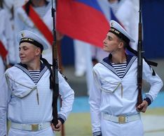 Люди всё прибывают, на гранитной набережной Спортивной гавани, пляже Юбилейном, в районе "Хаятта" на мысе Бурном — всюду желающие увидеть парад кораблей. Праздничный концерт начинается с выступления танцевальной группы ВДЦ "Океан" под песню Леонида Агутина. Трибуны заполнены. Прибыли на праздник гости — китайские моряки. К линии кораблей парада подошел катер командующего ТОФ Сергея Авакянца. Он приветствует экипажи. Рота почетного караула Владивостокского гарнизона демонстрирует мастерство владения карабином Симонова. Затем представляют корабли, стоящие в параде: подводная лодка "Комсомольск-на-Амуре", большой десантный корабль "Николай Вилков", госпитальное судно "Иртыш", спасатель подводных лодок "Алагез", эскадренный миноносец "Быстрый" и — впервые — корвет "Совершенный". Флагман парада — крейсер "Варяг". Сергей Авакянц поднимается на борт "Варяга", поздравляет моряков с праздником. Включается трансляция с борта: "Здравствуйте товарищи! Поздравляю вас с Днем Военно-морского флота!" — говорит адмирал. Экипаж поет гимн, все встают. "Сегодня наша страна отмечает день ВМФ. Созданный Петром I, флот прошел долгий и трудный путь. В годы Великой Отечественной войны моряки отважно несли службу на всех рубежах. В настоящее время корабли флота совершают многотысячные военные походы, обеспечивают России статус морской державы", — говорит командующий ТОФ. Троекратное "ура!" венчает его выступление. На площадке выступают военно-патриотические клубы: "Юнармия", "Варяг", клуб Юных патриотов Родины. Поют свой гимн, демонстрируют приемы самообороны. Отряд юных моряков направляется к пирсу, чтобы торжественно встретить катер командующего ТОФ — он уже отошел от парадного строя и направляется к водной станции ЦСКА. Ведущие перечисляют фамилии именитых флотоводцев: Невельского, Шефнера, Крузенштерна, Лазарева, Кузнецова и других. Перечисляют значимые даты из истории Военно-морского флота. Петру I, основателю российского морского флота, в этом году исполняется 345 лет.