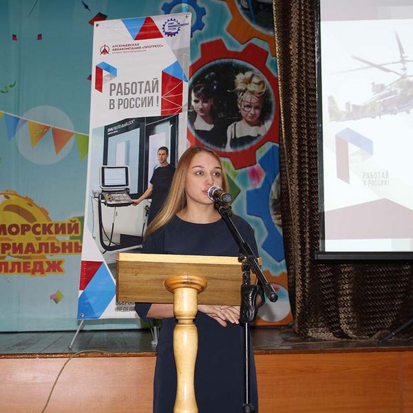 «Работай в России!»На прошлой неделе стартовала Всероссийская акция "Неделя без турникетов", организованная Союзом машиностроителей России. Акция реализуется с 2015 года в рамках Федеральной программы "Работай в России!". 16 октября состоялось первое профориентационное мероприятие акции "Неделя без турникетов" в городе Арсеньеве. В актовом зале Приморского индустриального колледжа собрались школьники старших классов города Арсеньева и их родители, представители высшего и среднего профессионального образования города, специалисты управления образования и представители ПАО ААК "ПРОГРЕСС". Вступительное слово взяла координатор мероприятий акции, ведущий специалист службы управления персоналом ААК "Прогресс" Ирина Клочкова. Она отметила, что цель встречи — это профориентация старшеклассников, направленная на востребованные профессии и открытые вакансии на сегодняшний день и на перспективу градообразующего предприятия — Арсеньевской авиационной компании "Прогресс", а также рассказала о том, какие образовательные услуги можно получить в городе и как действуют профильные технические площадки. Далее с приветственным словом выступила начальник бюро подбора, найма и развития персонала ПАО ААК "ПРОГРЕСС" Анастасия Попова: "Для производства боевого разведывательно-ударного вертолета Ка-52, который известен во всем мире, а также серийного производства гражданской продукции нужны грамотные и квалифицированные кадры. Наверняка вы слышали и читали недавние новости о том, что после завершения Восточного экономического форума и ознакомления с продукцией предприятия президент России Владимир Путин поручил правительству проработать вопрос об обеспечении нашей компании заказами. Кроме того, перспективным является и развитие малой авиации в Приморском крае. Поэтому работа нам предстоит огромная, сложная, требующая профессионализма и современных знаний. Именно по этой причине сегодня мы делаем ставку на молодежь: выпускников школ, студентов колледжей и технических вузов. Сделав сегодня выбор в пользу рабочей профессии или инженерной авиастроительной специальности, вы сможете развивать свои навыки, получать достойную зарплату, строить карьеру вместе с одним из крупнейших предприятий нашего края — авиакомпанией "Прогресс". В свою очередь начальник управления образования АГО Тамара Ивановна Ягодина подчеркнула: "Спрос на технические специальности растет из года в год. И в этом году нам пришлось расширять технический класс, организовывать новые группы учащихся для приобретения технических специальностей. Сегодня количество учащихся составляет 250 человек. И это очень радует, что в нашем городе на смену старшему поколению приходит талантливая молодежь, выбирая техническую направленность". В ходе мероприятия выступили студенты колледжа ДВФУ, Приморского индустриального колледжа и студенты высших учебных заведений. В небольшом рассказе о себе ребята делали упор на приобретение технических специальностей и планах на будущее трудоустройство, а также говорили о том, какую роль в их выборе профессии сыграла профильная площадка. Филиал Дальневосточного федерального университета в городе Арсеньеве представил заместитель директора филиала Сергей Васильевич Чикризов, рассказав о технических специальностях высшего и сре