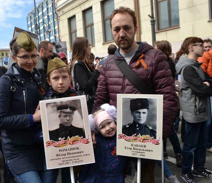 Семейная традицияГалина Клюшникова: — Мы с семьёй сегодня несём двух наших прадедов. Один из них, хоть и не воевал непосредственно на фронте, внес большой вклад в восстановление народного хозяйства. Он и не мог отправиться на фронт, потому что работников электростанций не брали даже добровольцами. Их знания были нужны для восстановления электростанций, разрушенных немцами. После того как освобождали какие-то территории, наш дед Фёдор Иванович Романюк восстанавливал электростанции. И, хоть он жил на Дальнем Востоке, на работы по восстановлению его отправили на Украину. И после того как закончилась война в 45-м, его домой не отпустили. Домой он, как и многие настоящие бойцы, попал не сразу, а только в 1947 году. Он тоже был под обстрелами, в течение пяти лет восстанавливая на Западе электростанции. У него, когда он уезжал, было четверо детей, и одному из сыновей было три года. А когда дед вернулся, этому сыну было уже 8 лет. Он своего отца не узнал и спрятался от него под стол. Второй наш дед – Егор Васильевич Кабаев. Он воевал в Советско-японской войне, получил медаль "За победу над Японией". Дошёл до Порт-Артура, слава Богу, вернулся живой, и благодаря этому мы появились на свет. Мы здесь всей семьёй: с мужем, со старшим сыном и младшей дочкой. — Вы уже принимали участие в "Бессмертном полку"? — Да. Это уже традиция наша семейная. Правда, в прошлом году мы шли только с одним дедом, с тем, который воевал. А увидели, что несут ещё тружеников тыла, и в этом году мы сделали портрет второго деда, потому что он труженик тыла, и у него есть орден "За доблестный труд в период Великой Отечественной войны". «Прогресс Приморья», № 18 (480) от 11.05.2018 г. |