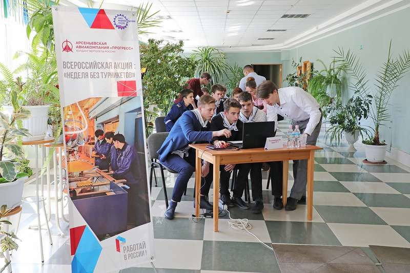 «Неделя без турникетов» в АрсеньевеИнженер – это звучит гордо!Широкомасштабным профориентационным проектом "Эра инженеров", направленным на популяризацию инженерных специальностей среди молодёжи, продолжилась акция "Неделя без турникетов" в городе Арсеньеве. Организаторами акции выступили Арсеньевская авиационная компания "Прогресс" им. Н. И. Сазыкина и Приморское региональное отделение Союза машиностроителей России. В музыкальной гостиной Дворца культуры "Прогресс" собрались организаторы, участники и почетные гости ежегодного проекта для старшеклассников города "Эра инженеров". Выбор профессии – важный и ответственный шаг. От этого выбора зависит, как сложится дальнейшая жизнь человека. Проект "Эра инженеров" направлен на то, чтобы помочь старшеклассникам сориентироваться в многообразии технических специальностей и сделать правильный выбор. Приветствие участниковОт имени организаторов с приветственным словом к присутствующим обратилась начальник службы управления персоналом ААК "Прогресс" Елена Борисовна Лесникова: "Сегодня на нашем предприятии идёт мощная модернизация, запускаются новые производственные линии, внедряются инновационные технологии. А для того чтобы всё это успешно функционировало, нужны специалисты нового формата. И мы делаем ставку на молодёжь! Мы выступаем организаторами форумов, конференций, "круглых столов", на которых вы, ребята, делаете первые шаги в конструкторской и проектной деятельности, загораетесь интересом к техническим специальностям и со временем приходите к нам на завод уже подготовленными специалистами". От Администрации Арсеньевского городского округа участников поприветствовал врио главы АГО Владимир Сергеевич Пивень: "В прошлом году я впервые посетил это мероприятие, и мне настолько понравилось, что я решил всегда принимать в нём участие, вне зависимости от своей занятости. Что касается самого направления, то, безусловно, очень радостно, что сегодня "инженер" – звучит гордо. Было время, когда эта профессия ассоциировалась с бедностью и невозможностью устроиться на работу. Но сегодня инженер – это уверенность в будущем, надежная работа и финансовая обеспеченность. Вы не прогадаете, если выберете именно эту стезю – стезю инженера. Вас будут ждать на всех предприятиях нашего города и края. Уверен, что у нашей промышленности – светлое будущее с такими замечательными ребятами, как вы". Продолжила приветствие ведущей специалист Управления образования АГО Елена Николаевна Денисюк, которая отметила, что Управление образования АГО ежегодно проводит мониторинг поступления выпускников 9–11 классов, и по его результатам в этом году более 85 % выпускников 11-х классов поступили в высшие учебные заведения на технические специальности. "Эта цифра говорит о высоком уровне профориентационной работы в городе Арсеньеве. Ряд таких мероприятий и ваше обучение в инженерном и техническом классах позволяют вам сделать правильный выбор", – заключила она. Опыт молодёжи "Прогресса"В ходе первой части мероприятия по уже сложившейся традиции молодые специалисты ААК "Прогресс" на личном примере рассказали, в каких вузах страны они получали образование, как и почему сделали выбор в пользу именно этого предприятия, а также о том, как сложилась их карьера сегодня. Первой к микрофону была приг