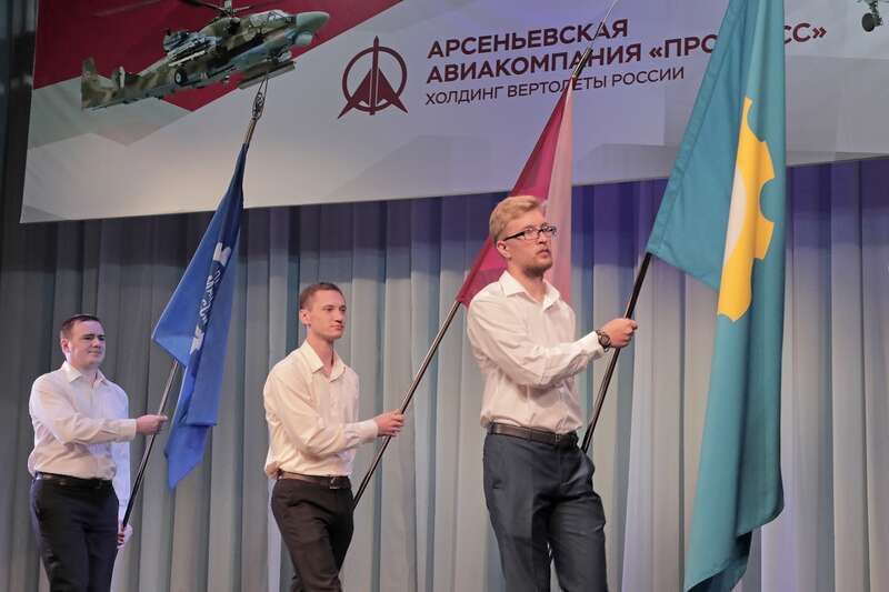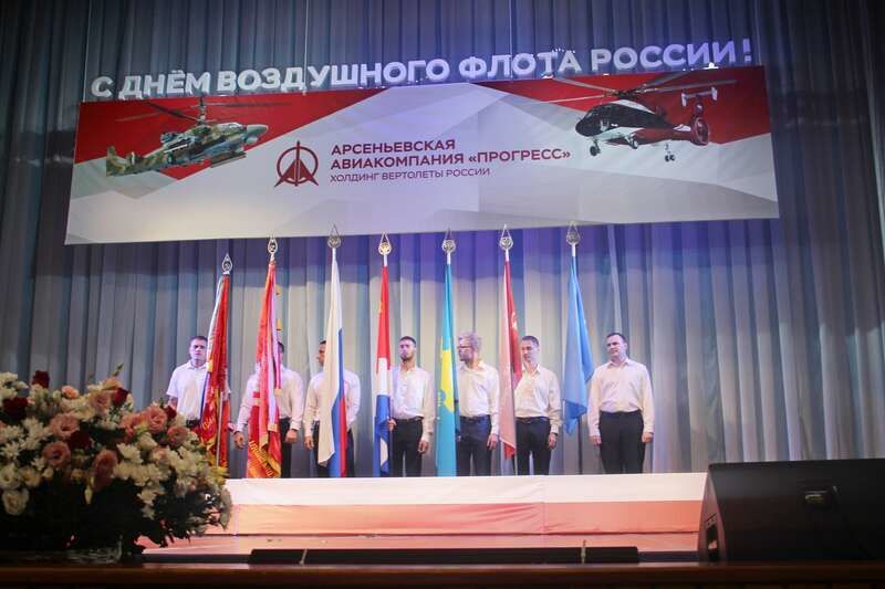Корабелы Воздушного флота России получили заслуженные наградыСогласно доброй традиции, накануне Дня Воздушного флота России во дворце культуры "Прогресс" прошло чествование лучших работников ПАО ААК "ПРОГРЕСС". В зале собрались заводчане и ветераны предприятия. Среди приглашенных гостей были врио главы Арсеньевского городского округа Владимир Сергеевич Пивень и председатель думы АГО Анатолий Михайлович Щербаков. Торжественно на сцену были вынесены знамена: "Министерства Авиационной промышленности СССР с Орденской лентой Ордена Трудового Красного знамени", "Арсеньевский машиностроительный завод "Прогресс" имени Николая Ивановича Сазыкина с Орденской лентой Ордена Октябрьской Революции", Флаги Российской Федерации, Приморского края, Арсеньевского городского округа, ПАО ААК "ПРОГРЕСС", Общероссийской общественной организации "Союз машиностроителей России". В церемонии выноса флагов и знамён участвовали лучшие молодые специалисты авиакомпании "Прогресс": сборщик изделий из стеклопластиков цеха деталей и агрегатов из ПКМ Михаил Бурнос, наладчик станков и манипуляторов с программным управлением механического цеха программной обработки деталей Михаил Глушак, мастер участка отдела главного металлурга Артём Савватеев, инженер-технолог цеха контрольных испытаний и электрических систем Николай Николаенко, сборщик изделий из стеклопластиков цеха деталей и агрегатов из РТМ Алексей Чекалов, инженер-технолог отдела программного управления Дмитрий Диденко, начальник бюро отдела главного технолога Александр Колтунов. Каждый день работники авиационной компании своим самоотверженным трудом, требующим хладнокровия, глубочайших знаний, огромной ответственности, умения находить наиболее оптимальные решения в сложнейших условиях, работают над производством боевых вертолетов. От профессионализма всего коллектива зависят качество и техническая исправность машин. Собравшихся авиастроителей поздравил первый заместитель управляющего директора – технический директор ААК "Прогресс" Виктор Алексеевич Стребков. "Я от всей души поздравляю доблестный трудовой коллектив авиационной компании "Прогресс". Каждый год мы подходим к празднику с новыми достижениями. Благодаря работе и сплоченности трудового коллектива удалось достичь высоких результатов по производству винтокрылых машин. Коллектив всегда бесперебойно и оперативно обеспечивает изготовление и поставку продукции, выполняя государственный оборонный заказ. Спасибо за ваш труд, за достойный вклад в развитие оборонного комплекса страны! Желаю вам новых профессиональных высот и достижений, крепкого здоровья, благополучия", – отметил Виктор Стребков. По традиции Виктор Алексеевич вручил заслуженные награды работникам предприятия. За большой личный вклад в развитие промышленности и в связи с юбилейной датой со дня рождения почетной грамотой Министерства промышленности и торговли Российской Федерации были награждены: слесарь-инструментальщик центра подготовки производства В. И. Шеломенцев, заместитель начальника по производству механического цеха В. А. Шаторный, монтажник электрооборудования летательных аппаратов цеха по изготовлению электромонтажных частей авиационной техники Г. Ю. Осокин, заместитель главного бухгалтера Н. Т. Негодюк, начальник бюро о