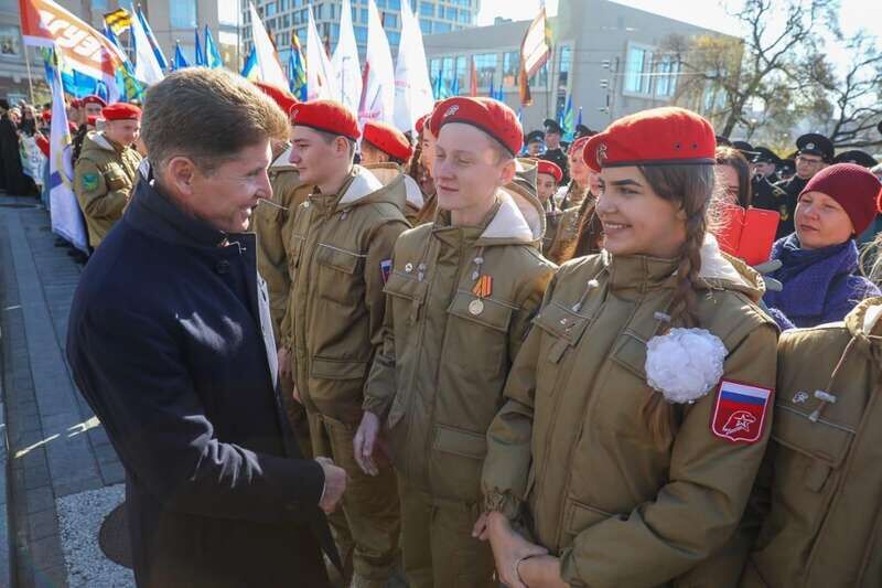 День народного единства во ВладивостокеМитинг-концерт, посвященный Дню народного единства, состоялся во Владивостоке. В мероприятии принял участие губернатор Приморского края Олег Кожемяко. В этот день на Корабельной набережной у Вечного огня собралось до 4 тысяч человек – представители общественных организаций, политических партий, курсанты и студенты. В митинге приняли участие и представители Приморского регионального отделения Союза машиностроителей России. В своём выступлении Олег Кожемяко подчеркнул, что именно сила единства помогла развиваться стране и ее форпосту на востоке – Приморскому краю. "В крае проживают представители 160 национальностей. Они плечом к плечу осваивали необжитые таежные земли, строили города и порты, воевали с интервентами в Гражданскую, защищали Москву и брали Берлин, освобождали Корею и Китай. В истории Приморского края их имена увековечены в названиях городов и поселков, улиц и скверов", – отметил глава региона. Губернатор добавил, что жители края – единая крепкая семья с одним желанием сделать Приморье комфортным и процветающим регионом. "Наши земляки прославили наш край, заложили духовную основу характера приморца как символ мужественного человека, всегда готового прийти на помощь", – заявил Олег Кожемяко. Дню народного единства были посвящены и другие мероприятия, состоявшиеся в городе. Например, на площадке в Снеговой пади (ул. Анны Щетининой, 9) прошёл концерт, посвящённый празднику. Его посетили местные жители, больше среди зрителей было детей. Концерт состоял из номеров музыкальных коллективов продюсерского центра Vivid Arts. Пели вокалисты арт-студии "АванСцена", играла музыкальная группа MuzikVox. Между концертными номерами девочка-конферансье рассказывала об истории праздника, освобождении Москвы, о Минине и Пожарском. Жители микрорайона с интересом наблюдали за происходящим на импровизированной сцене из окон собственных квартир. Концерт в честь Дня народного единства продолжался около полутора часов. «Прогресс Приморья», № 37 (600) от 13.11.2020 г. |