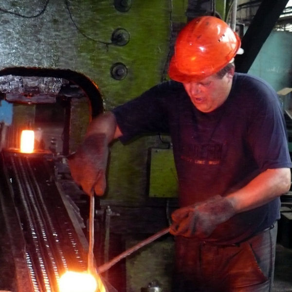 На кузнечно-прессовом участке литейного цеха завода "Аскольд" вовсю кипела работа. Быстрыми и ловкими движениями штамповщик извлекал из печи раскаленные заготовки, удалял окалину, возникающую при нагреве, и проворно бросал ее на транспортер. Болванка продолжила свой рабочий путь к формовочному штампу. Когда работа была завершена, у меня появилась возможность познакомиться с кузнецом-штамповщиком.