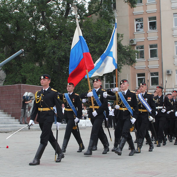 На Тихоокеанском флоте — праздник!"Для Владивостока День Военно-морского флота — это второй День города, — сказал мэр Владивостока Игорь Пушкарев. — И потому его жителей можно поздравить с еще одним большим общим праздником…". Короткое интервью глава города дал представителям СМИ буквально в перерыве между этапами плотного графика мероприятий, посвященных "Дню города-2". Корреспондент газеты Приморского регионального отделения Союза машиностроителей России "Прогресс Приморья" был непосредственным участником событий 29 июля. И вот что увидел… Владивосток вот уже много лет празднует в последнее воскресенье июля День Военно-морского флота России. И если в самом городе, на его улицах и площадях, приметы праздника заметны не особенно, то флот отреагировал по-военному четко — на всех (!) боевых кораблях подняты сигнальные флаги, военные моряки в парадной белой форме, ветераны — с орденами и медалями на груди. Празднование Дня ВМФ во Владивостоке началось утром с возложения венков к Вечному огню мемориала "Боевая слава Тихоокеанского флота". Память погибших в разные годы моряков почтили губернатор Приморского края Владимир Миклушевский, командующий войсками Восточного военного округа Константин Сиденко, командующий ТОФ Сергей Авакянц, представители власти, духовенства, а также ветераны и жители Владивостока. Как рассказал журналистам контр-адмирал Сергей Авакянц, в 2012 году моряки ТОФ должны выполнить всего около 600 боевых упражнений. Из запланированного сейчас выполнено 75% — впереди еще очень напряженная учеба. Сразу после интервью контр-адмирал Авакянц принял рапорт командира роты почетного караула, поздравил составляющих ее основу — морских пехотинцев — с праздником и вместе с губернатором и мэром, в сопровождении генералитета поднялся на борт судна "Ураган". На нем контр-адмирал обошел строй боевых кораблей Тихоокеанского флота, выстроенных в колонну на акватории Амурского залива. ТОФ представляли: дизельная подводная лодка, базовый тральщик, ракетный катер проекта "Молния", МПК "Усть-Илимск", гидрографическое судно "Вице-адмирал Воронцов", БДК "Николай Вилков" и "Пересвет", эскадренный миноносец "Быстрый", БПК "Маршал Шапошников", флагман парада — гвардейский ракетный крейсер "Варяг"... Высадка морского десанта, освобождение экипажа судна от пиратов, поражение надводной цели торпедой и многое другое смогли увидеть многочисленные зрители морского шоу. Представление "Ходили мы походами" разворачивалось на Водной станции ТОФ. Попали туда не многие. Тройной пояс охраны, строгая проверка пропусков и документов, тщательный досмотр сумок и кофров с аппаратурой — вот причины, по которым не имеющие заветного билетика граждане и неаккредитованные журналисты не смогли попасть на трибуну. Большинство прибывших на праздник наблюдали военно-морской парад и театрализованное представление с высоты улицы Набережной… Впрочем, не попавшие в "первые ряды" галерки-Набережной особенно не переживали — улыбались, фотографировались, размахивали флагами, и вообще, праздновали очень активно. Среди зрителей было немало союзмашевцев Владивостока. Горожане и гости приморской столицы смогли увидеть китообразную рыбу, на которой Нептун ежегодно прибывает в главную базу ТОФ. Эта роль также традиционно отводится десантному плашкоуту, ук
