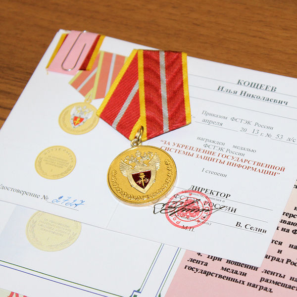 Заслуженная наградаУправляющий директор авиакомпании "Прогресс", председатель Приморского регионального отделения Союза машиностроителей России Юрий Денисенко и начальник отдела защиты информации авиакомпании "Прогресс" Илья Кощеев на заседании секции авиастроения и авиаремонта координационного совета по проблемам защиты информации организаций оборонно-промышленного комплекса Дальневосточного федерального округа были награждены медалями Федеральной службы технического и экспортного контроля "За укрепление государственной системы защиты информации I степени". Медали вручил руководитель управления ФСТЭК России по Дальневосточному федеральному округу Виктор Анохин. «Прогресс Приморья», № 30 (242) от 01.08.2013 г. |
