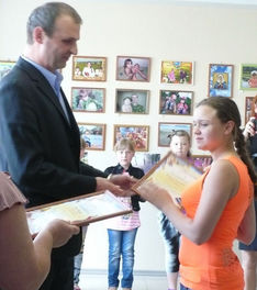 Получилось тепло — по-семейному…Накануне Дня защиты детей, в солнечный и по-летнему теплый день, на проходной арматурного завода "Аскольд", одного из активных представителей Приморского регионального отделения Союза машиностроителей России, наблюдалось необычное оживление. Дети всех возрастов вместе со своими родителями и бабушками дружно двигались к зданию заводской администрации предприятия. Здесь, в холле первого этажа, состоялось подведение итогов заводского творческого конкурса, посвященного Международному дню защиты детей и Всемирному дню родителей. Участников праздничного мероприятия было 58 человек. Труженики предприятия, их дети, внуки и другие члены семей с удовольствием и нескрываемым азартом проявили инициативу и поучаствовали в конкурсе. Причем самым младшим участникам — Кириллу Гринченко и Саше Дергунову — 3,5 и 4 года соответственно, а старшему… впрочем, не так важно. Всем без исключения конкурсантам представлялась прекрасная возможность продемонстрировать свои природные дарования и, как результат, победителям конкурса — получить грамоты и специальные призы. К великому удивлению и радости, конкурсных работ было много: поделки, вышивка, фотографии, вязание, рисунки… Откровенно говоря, всё впечатляет, радует и притягивает взгляд. Любуясь работами, нельзя было не восхищаться огромным талантом детей и взрослых. Таких непохожих и разных, их объединяло одно — дарование, фантазия, усердие, трудолюбие, интерес и желание творить и создавать прекрасное. – У меня на конкурсе несколько работ, — рассказывает Маша Осач. — На заводе я впервые. В отделе главного конструктора трудится моя бабашка Надежда Леонтьевна Федосеева. Я учусь в гимназии № 7, перешла в пятый класс. Учусь хорошо. А еще я хожу в художественную школу. Конкурсантке Варваре Приходько семь лет. На выставке у нее четыре работы, это в основном вышивка крестиком — она с удовольствием вышивает с мамой. Варя пришла сюда со своей бабушкой Альбиной Петровной Приходько, которая работает в службе охраны и… тоже стала участницей конкурса. И вот наступил "звездный час" аскольдовцев, больших и малых, — награждение победителей. Без всякого официоза, тепло и душевно исполнительный директор ОАО "Аскольд" Андрей Павлович Семёнов поблагодарил всех присутствующих за участие. – Очень важно, чтобы дети увидели, где работают их родители, — сказал Андрей Павлович, — и чтобы родителям всегда хватало времени на воспитание своих детей. Андрей Павлович поздравил ребят с окончанием учебного года и началом прекрасной поры — каникул. А еще он отметил, что, независимо от занятого в конкурсе места, дорого участие, и это самое главное. Затем вручил грамоты и призы победителям. В конкурсе было несколько номинаций. Путем зрительского голосования почётное первое место в номинации "Вышивка" заняла Светлана Коргун, ей 13 лет. В номинации "Фото" — работник отдела маркетинга Анна Ходаковская. Самой интересной поделкой признана работа Лёвы Поляничко. Ему 12 лет. Лучший рисунок "Фотопортрет семьи" — у Маши Осач 11-ти лет, а вот в номинации "Вязание" первое место было присуждено инженеру отдела № 41 Антонине Михайловне Юриной. Не были обделены вниманием и семейные работы. Таковых было тоже предостаточно. Именно в таком тесном тандеме родителей и детей просматривалась очень важная воспита