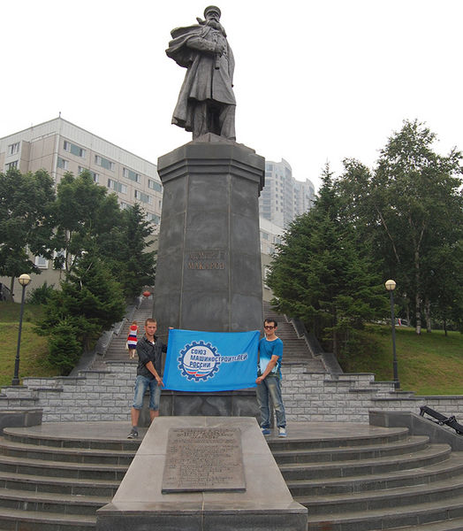 К памятнику славного адмирала...В День Военно-Морского Флота России приморцы, среди которых было немало работников оборонных предприятий, таких как "Варяг", "Дальприбор", "Радиоприбор" и других, посетили знаковые места, связанные с именами моряков-героев всех времён, возложили цветы к монументам и памятникам, воздвигнутым в честь флотских экипажей, кораблей, подводных лодок. Одним из посещаемых мест стал памятник Степану Осиповичу Макарову, выдающемуся русскому флотоводцу, научному исследователю залива Петра Великого и дальневосточных морей, вице-адмиралу флота российского. Окончил он Николаевское-на-Амуре морское училище. В 1861 году начал службу на кораблях Сибирской флотилии и Тихоокеанской эскадры. Плавал на клипере "Стрелок", транспорте "Маньчжур", шхуне "Восток", клипере "Абрек", корветах "Богатырь", "Варяг", пароходо-корвете "Америка" и других. Был переведён на Балтику. В 1870—1872 годах на шхуне "Тунгус" совершил переход на Дальний Восток. С 1876 по 1878 годы командовал пароходом "Великий князь Константин" на Чёрном море, на котором впервые в истории русского флота применил доставку к месту боя минных катеров, с успехом атаковавших турецкие корабли. В 1881 году на пароходе "Тамань" изучал течение в черноморских проливах. В 1886—1889 годах командовал корветом "Витязь", совершил кругосветное плавание, вошедшее в историю мировой океанографической науки. Во время пребывания во Владивостоке произвёл первый морской промер части залива Петра Великого и картографирование бухты Витязь и Троицы. В 1894 году стал командовать Средиземноморской эскадрой, с которой совершил переход на Тихий океан. Разработал чертежи парохода "Ермак", в 1899—1901 годах осуществил на нём походы в Арктику. В последующие годы был старшим флагманом на Балтике и главкомом Кронштадтского порта. С началом Русско-японской войны 1 февраля 1904 года назначен командующим флотом. Погиб 31 марта 1904 года на броненосце "Петропавловск", подорвавшемся на мине. В честь адмирала Макарова назван 21 географический объект в Охотском, Баренцевом, Карском морях, Северном Ледовитом и Тихом океанах. За научные труды "Об обмене вод Чёрного и Средиземного морей" (1885) и "Витязь" и Тихий океан" (1894) получил премии Российской академии наук. В 1967 году во Владивостоке на площади Луговой был установлен памятник Макарову. Авторами были скульптор А.И. Тенета и архитектор А.А. Усачёв. В 1980 году на лицевой грани постамента по инициативе и на средства полярного капитана Н.Г. Позднякова укреплена бронзовая доска со словами Макарова о необходимости освоения русского Севера. Во Владивостоке имя адмирала Макарова носит ТОВВМУ, учебное заведение, выпускающее высококвалифицированных офицеров для ВМФ России. Сегодня памятник прославленному русскому адмиралу возвышается в районе кинотеатра "Океан", куда его доставили с площади Луговой. В День Военно-Морского Флота здесь побывали сотни моряков, владивостокцев и гостей города. «Прогресс Приморья», № 30 (293) от 31.07.2014 г. |