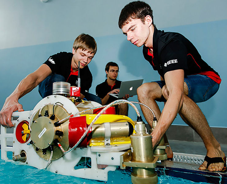 Робототехники ДВФУ представят Россию на азиатском чемпионатеКоманда Дальневосточного федерального университета по робототехнике завершает подготовку к открытому чемпионату Азии — Singapore AUV Challenge. В начале марта на престижные состязания соберутся сборные ведущих технических вузов Китая, Индии, США, Сингапура, Малайзии, Таиланда и других стран. Студенты и аспиранты ДВФУ вновь будут на чемпионате единственными представителями России. Как сообщил участник команды, аспирант Инженерной школы ДВФУ, входящей в состав Приморского регионального отделения СМР, Антон Толстоногов, вузовский робот, который уже не раз достойно проявлял себя на международных соревнованиях, внешне не претерпел изменений. Но в ходе подготовки к чемпионату для аппарата разработали совершенно новое программное обеспечение. "Если в прошлом году мы усиленно работали над механическими функциями и оборудованием, то в этот раз было решено сделать главный "апгрейд" робота и поставить ему по-настоящему серьезные "мозги" — профессиональную программу на базе ROS, — пояснил Антон Толстоногов. — Это особенно важно для автономного аппарата, ведь все действия под водой он выполняет самостоятельно, без связи с человеком и в соответствии с теми алгоритмами, которые мы ему зададим заранее". Сейчас над аппаратом в лаборатории работают десять студентов, магистрантов и аспирантов Инженерной школы и Школы естественных наук ДВФУ. Костяк команды составляют опытные участники соревнований по робототехнике, к которым присоединилось несколько новичков. Начинаются испытания робота в одном из бассейнов кампуса. Известно, что в этом году в Сингапуре предстоит выполнять задания под водой, ориентируясь в основном по звуку — с помощью гидроакустических приборов. Дальневосточный федеральный университет является признанным мировым лидером в области подводной робототехники. На Singapore AUV Challenge команда ДВФУ выступала дважды: в 2013 году студенты из Владивостока заняли первое место, а через два года завоевали для России "серебро", уступив лишь хозяевам чемпионата — Национальному университету Сингапура. Кроме того, уже несколько лет робототехники ДВФУ становятся призерами других крупных и престижных соревнований в США – RoboSub. «Прогресс Приморья», № 5 (369) от 11.02.2016 г. |