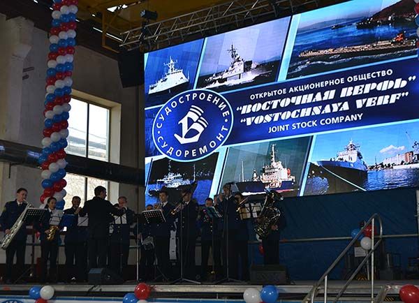 «Восточная верфь»: торжества в честь 65-летияКоллектив АО "Восточная верфь" отметил 65-летний юбилей. Предприятие образовано в 1952 году на базе судоремонтных мастерских для создания кораблей для Тихоокеанского флота и пограничных сил Дальневосточного региона. Завод 65 лет успешно работает и выполняет государственный оборонный заказ. За этот период судостроители "Восточной верфи" построили более 500 кораблей и судов различного назначения. Корреспондент газеты Приморского регионального отделения Союза машиностроителей России побывал на торжественном собрании. Открыл торжественное собрание приветственным словом генеральный директор АО "Восточная верфь" Олег Борисович Сиденко: — Уважаемые заводчане! Дорогие гости! Сегодня у нас очень торжественная дата — 65-летний юбилей завода. Наше предприятие шло к ней нелёгким трудом: были большие достижения в перевооружении предприятия, в строительстве нового. Итогом этих достижений стало строительство более 500 заказов для Министерства обороны РФ, для пограничников и для рыбопромыслового флота. Это, конечно, заслуга всего нашего коллектива. Наши судостроители-заводчане являются настоящими профессионалами и людьми, верными своему делу. Я с большим уважением отношусь ко всем нашим работникам и сердечно вас всех поздравляю с этим праздником. От всего сердца желаю вам крепкого здоровья, семейного благополучия, всего самого светлого и хорошего! К юбилейному мероприятию был подготовлен приказ руководства о награждении работников предприятия почётными грамотами. Те, кто своим многолетним трудом прославил завод, выходили на сцену для чествования. Приказ гласит: "За большой личный вклад в развитие завода, добросовестный труд и высокий профессионализм в честь празднования юбилея завода приказываю наградить почётными грамотами следующих работников АО: Балаеву Любовь Петровну, заведующую канцелярией, Вакину Ирину Петровну, инспектора отдела кадров, Волкова Игоря Анатольевича, старшего контрольного мастера ОТК, Жигарова Геннадия Григорьевича, инженера-конструктора 1 категории технического отдела, Ильюша Василия Васильевича, труболивщика судового цеха № 15, Мармилова Виктора Васильевича, начальника бюро технической подготовки производства цеха № 4, Манину Людмилу Матвеевну, сторожа-вахтёра отдела охраны, Митькину Валентину Владимировну, заместителя главного бухгалтера, Надточий Лидию Тимофеевну, маляра цеха № 7, Суханова Генриха Георгиевича, инженера-конструктора 1 категории технического отдела, Савалей Владимира Александровича, разметчика судового 5 разряда цеха № 4, Флетчера Юрия Владимировича, старшего строителя кораблей отдела главного строителя, Хилобок Веру Васильевну, экономиста по снабжению отдела снабжения. Объявить благодарности: Бурчик Марине Михайловне, инженеру 1 категории производственно-диспетчерского отдела, Даленко Ольге Владимировне, уборщику служебных помещений административно-хозяйственного отдела, Засенок Артёму Сергеевичу, начальнику отдела заводских лабораторий, начальнику рентгеновской лаборатории отдела заводских лабораторий, Кожановой Анне Михайловне, заместителю начальника финансового отдела, Колесникову Валерию Анатольевичу, водителю автомобиля цеха № 11, Маховой Лидии Николаевне, мастеру участка цеха № 3, Минеевой Екатерине Николаевне, к