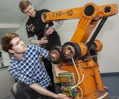 Новейшее оборудование для робототехниковНовейшее робототехническое оборудование установлено в лаборатории кафедры автоматизации и управления Инженерной школы Дальневосточного федерального университета. Использование в учебном процессе роботов от лидеров-производителей позволяет готовить из студентов направления "Мехатроника и робототехника" профессионалов для работы с системами автоматического управления различными мехатронными объектами. Учебно-научная лаборатория кафедры за последнее время получила большую партию высококлассной робототехники, что позволило вывести обучение и научно-исследовательскую работу на новый уровень. Сейчас в распоряжении ученых и студентов находится оборудование, относящееся к автоматизации производства, мобильной, подводной и промышленной робототехнике. Главная цель кафедры — выпускать высококлассных специалистов и делать разработки мирового уровня в области робототехники и комплексной автоматизации производства. А для создания техники новейшего промышленного уклада ставится цель на опережение: не догонять, а сразу пытаться опередить современный мировой уровень — особенно в области интеллектуализации производства. Значительная часть оборудования лаборатории — учебные роботы немецкого концерна FESTO. Среди них — простейшие устройства для начинающих, которые знакомят с азами создания механизмов, особенностями их сенсоров, процессоров и приводов. Более сложные роботы и манипуляторы выполняют интеллектуальные функции: сортируют, группируют, точно перемещают детали с учетом технологического процесса. Несколько таких машин можно быстро включить в производственную цепь для реальной работы. Осваивают студенты и промышленные роботы KUKA, интерфейсы которых ориентированы на тех, кто уже обладает определенными знаниями и навыками в области робототехники. Углубленно изучить принципы работы электроники и теорию управления студентам помогают обучающие стенды National Instruments. Вынесенные на внешнюю сторону платы и панели с контроллерами и процессорами в свободном доступе показывают, как функционирует электроника и цифровая техника, управляющая многозвенными механизмами и динамическими объектами. В лаборатории также имеется парк отечественных мобильных роботов АМУР (автономные мобильные учебные роботы) на колесах и гусеницах. Эти машины разработаны под руководством доктора технических наук Валентина Прянишникова в Международной лаборатории "Сенсорика" Института прикладной математики имени М.В. Келдыша и предназначены как для обучения, так и для выполнения исследований по интеллектуальному групповому управлению. Не только новейшее оборудование, но и техника прошлых лет находит место в процессе обучения. Используя манипуляторы, созданные в 1970-80-х годах, магистранты постоянно совершенствуют их системы управления, экспериментируя и оснащая старые механизмы новой электроникой и микропроцессорами. Эта работа стала основой диссертаций уже нескольких выпускников кафедры. Используется на кафедре и грамотное сочетание робототехники и всего, что нужно для успешной автоматизации производства. Налажена эффективная система "обучение — наука — производство", в том числе с базовой кафедрой в Институте автоматики и процессов управления Дальневосточного отделения Российск