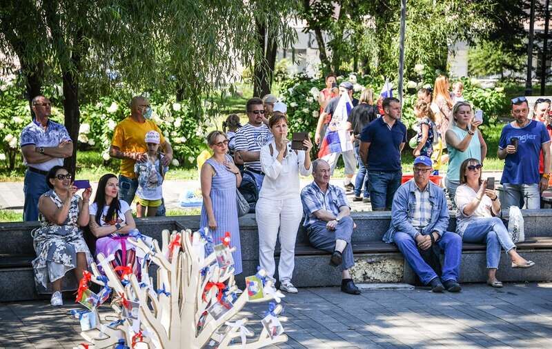 День Государственного флага России – во ВладивостокеЖители и гости Владивостока отпраздновали День Государственного флага. Праздничные мероприятия проходили на трёх площадках – на водной станции ЦСКА, улице Адмирала Фокина и в сквере Суханова. Торжества начались с "Зарядки чемпионов" на водной станции ЦСКА. Ранним утром в течение получаса дети и взрослые под руководством опытных инструкторов выполняли комплекс упражнений: разминку суставов, приседания, отжимания, выпады и прыжки. После этого все желающие могли принять участие в небольшом оздоровительном забеге на 2 км. Участие в спортивных мероприятиях принял и глава Владивостока Олег Гуменюк. Также в рамках Дня Государственного флага проходил заезд на водных мотоциклах с развевающимся триколором. В центре города на акватории водноспортивного центра ЦСКА на аквабайках катались члены клуба "АкваБро". Таким образом они присоединились к прошедшему рядом забегу горожан по берегу в футболках цветов российского флага. А в Краевой станции переливания крови к празднику приурочили акцию "Оставайся донором", в которой приняли участие и представители Приморского регионального отделения Союза машиностроителей России. На улице Адмирала Фокина открылась фотосушка, посвящённая праздничной дате. Она проходила в течение дня. Каждый желающий мог добавить к экспозиции свои снимки и прикрепить их на верёвку с помощью прищепки. Взамен можно было брать уже выставленные фотографии. Тематика фотографий здесь разнообразная: портреты людей, домашние животные, спортивные мероприятия, природа, виды города. Гуляющие по владивостокскому Арбату с интересом рассматривали необычную выставку под открытым небом. На Спортивной гавани выступили городские вокальные группы "Сфинкс" и "Порто-Франко". Во время концерта возле фонтана работали две площадки локальных аттракционов: на первой – "Цвет флага" – лица всех желающих раскрасили в цвета российского триколора; участникам второй – "Под флагом единым" – раздали шары трех цветов флага. Рядом с фотовыставкой была установлена огромная доска с контурами флага Российской Федерации. Неподалёку дети изготавливали разноцветных журавликов из красной, синей и белой бумаги. Затем их размещали на баннер на соответствующие полосы флага. С обратной стороны стенда любой желающий мог оставить маркером свои пожелания в честь праздника. Фотовыставка открылась и в сквере Суханова. Здесь были представлены работы участников одноименной онлайн-акции, которая проходила на странице городского управления культуры в Инстаграм. Жителям и гостям Владивостока был представлен тематический концерт с участием творческих коллективов города. Кроме того, присутствующие смогли узнать историю российского триколора, поучаствовать в викторине и получить маленькую копию этого государственного символа. Напомним, что День Государственного флага России был установлен в 1994 году указом Президента Российской Федерации. Он посвящен возрожденному флагу России – государственному триколору. День Государственного флага отмечается 22 августа и не является выходным днем. Дата праздника связана с событиями августовского путча, когда 22 августа 1991 года во время траурного митинга по погибшим манифестанты вынесли огромное бело-лазорево-красное полотнище, а Президент РСФСР объявил