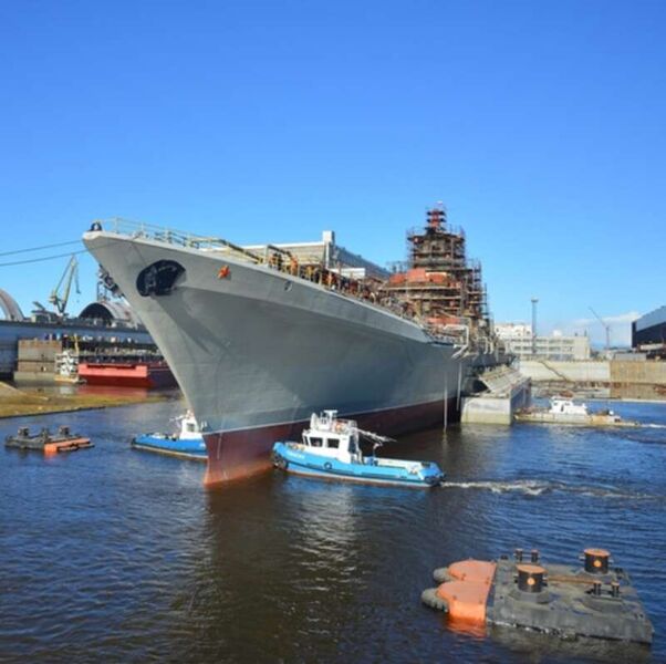 На Севмаше выведен из наливного бассейна модернизируемый атомный ракетный крейсер «Адмирал Нахимов»На Севмаше (входит в ОСК) состоялась уникальная технологическая операция по выводу корабля проекта 11442М из наливного бассейна к набережной предприятия. Операция по выводу корабля – ювелирная работа: при помощи буксиров крейсер прошел через ворота батопорта в акваторию предприятия. Эта работа по степени сложности выполнения не имеет аналогов в судостроении. Завершен один из наиболее трудоемких этапов ремонта корабля. Позади дефектация и демонтаж крупногабаритного оборудования, корпусных конструкций, подготовка помещений и монтаж нового оборудования, изоляционных материалов, кабельных трасс и т. д. При ремонте корабля была применена инновационная методика, связанная с 3D-моделированием оснащения корабля. В процессе ремонта будет произведена замена и обновление систем жизнеобеспечения корабля, радиотехнического вооружения, корабельной энергетики, а также замена комплексов ракетного и артиллерийского вооружения крейсера. В результате модернизации тяжелый атомный ракетный крейсер "Адмирал Нахимов" будет обладать совершенно новыми тактико-техническими характеристиками и существенно усилит потенциал надводной составляющей ВМФ России. ТАРК "Адмирал Нахимов" проекта 1144 "Орлан" до 1992 г. имел название "Калинин". Был заложен 17 мая 1983 г. на Балтийском судостроительном заводе. 25 апреля 1986 г. спущен на воду. 30 декабря 1988 г. пополнил боевой состав ВМФ СССР. 22 апреля 1992 г. переименован в "Адмирал Нахимов". «Прогресс Приморья», № 30 (593) от 25.09.2020 г. |