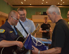 "Я летчик!"В городе Арсеньеве с единственным концертом выступил автор и исполнитель своих песен Николай Анисимов. Подполковник авиации в запасе, военный журналист, популярный бард и исполнитель песен авиационной тематики, известный слушателям своими произведениями, посвященными как легендарным летчикам, так и самим боевым машинам. Его песни — легенды, по своему содержанию емкие и динамичные, заставляют переживать те моменты, о которых поётся. Мне удалось после концерта побеседовать с замечательным автором и исполнителем, скромным и трудолюбивым человеком, который очень любит небо. — Николай, с чего все началось? — Любовь к музыке у меня возникла ещё с детства. Большую роль в этом сыграла мама, которая прекрасно пела и играла на семиструнной гитаре. Первым учителем игры на гитаре стал старший брат Михаил, показавший несколько аккордов. Первые стихи и песни стал писать ещё в школе. Мы с братом создали семейный ансамбль и в домашних условиях стали записывать песни, брат с имеющейся "техникой" пытался сделать что-то вроде домашней студии. Ставили пару микрофонов, подключали их к катушечному магнитофону и к вертушке, ну и… Клавишные, вокал — Николай Анисимов; гитара, вокал — Михаил Анисимов… К сожалению, записи того времени не сохранились. Ну, а дальше — больше. Появились тетради с текстами песен и стихами. Вместе со средней школой я закончил и музыкальную школу по классу фортепиано и трубы. — Мечта стать лётчиком-истребителем осуществилась? — К сожалению, нет. Я мечтал продолжить военную династию уже с пятилетнего возраста. Я военный в пятом поколении. Пытался поступить в Черниговское высшее военное авиационное училище лётчиков. К сожалению, пройти медкомиссию не удалось — подвело зрение. Тогда я поступил в Ленинградское высшее военное инженерное строительное Краснознамённое училище имени А.Н. Комаровского, которое оканчивал мой отец и старший брат. Но я не жалею. Получив профессию летчика, я бы освоил пару-тройку самолетов, а на сегодняшний день я летал почти на всех машинах в качестве корреспондента. А над Красной площадью во время парадов пролетал не меньше десятка раз. — Как семья относится к вашему творчеству? — Это мои первые и главные слушатели и оценщики. А потом уже советуюсь с друзьями-летчиками. Несмотря на большую загруженность по службе, с музыкой "не завязал". Сложились хорошие отношения с товарищами по творческому цеху, и друзей среди настоящих летунов много. Стал на регулярной основе принимать участие в Белорусском конкурсе авторской песни "Зелёный Гран-при", выступать на различных площадках. Писать я стал меньше по сравнению с предыдущими годами, не потому, что занят, а потому, что накопился богатый опыт, и уже все, что хочешь донести слушателю, тщательно отслеживаешь. — Как вам удаётся совмещать работу и музыку? — Получив повышение по службе, мы переехали в столицу Беларуси — Минск. Вскоре по семейным обстоятельствам уволился из армии и стал работать в крупной фирме. Участие в различных концертах продолжалось. Были выступления перед ликвидаторами Чернобыльской катастрофы, перед воинами-афганцами, записывался на радио и телевидении. В 2004 году последовало предложение стать ведущим военно-аналитической программы Министерства обороны Республики Беларусь. Сейчас я живу и работаю в Минске, часто приходится 