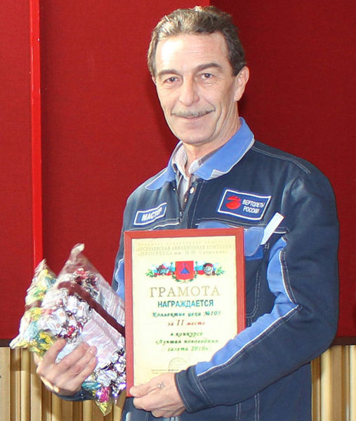 Лучшая новогодняя газета-2016В канун Нового года в Арсеньевской авиационной компании "Прогресс" наградили победителей конкурса "Лучшая новогодняя газета-2016". В конкурсе приняли участие 29 подразделений предприятия, многие из которых представили вниманию членов жюри не только яркие необычные творческие работы, но и целые костюмированные представления. Некоторые участники подготовили сразу несколько праздничных газет, а отделы главного конструктора и материально-технического снабжения и вовсе представили по одной стенгазете от каждого своего бюро. В ходе долгих споров и обсуждений члены жюри присудили первое место новогодней настенной композиции отдела главного механика. В состав обширной настенной композиции вошли объёмная ёлка, снеговик, обезьяна, новогоднее поздравление, а также "Волшебная доска", на которой все желающие могли написать свои самые заветные мечты и планы на будущий год, например, отправиться в отпуск или получить премию. Работники этого отдела задействовали не только стену, но и потолок, на котором они поместили символ года – обезьянку, раскачивающуюся на лианах-гирляндах. Примечательно было и то, что на первом этаже корпуса, в котором расположен отдел, его сотрудники заботливо оставили сопроводительный знак, подсказывающий, где находится "Приёмная снеговика". Второе место заслужил заготовительно-штамповочный цех. Объёмная обезьяна, обладающая практически человеческими руками с хитро переплетёнными пальцами, покорила взгляды членов жюри. Не менее интересным элементом этой творческой работы была ёлка, сформированная из настоящих шишек. Третье место по праву получил отдел эксплуатации и сервисного обеспечения. Помимо объёмной стенгазеты, сделанной с использованием настоящих еловых веток и новогодней ёлки из мишуры и конфет, конкурсанты представили вниманию жюри огромное настенное изображение Деда Мороза, мчащегося с подарками в упряжке-тройке. Среди работ участников были как традиционные стенгазеты c необычными элементами, так и совершенно нетрадиционные. Например, отдел по связям с общественностью и молодёжной политике создал единственную в своём роде 3D-газету, исполненную в форме треугольника. Одна её грань содержала изображение завода, окружённого зимней сказкой, другая – снеговика, приветствующего пролетающую над полной луной упряжку Деда Мороза, а третья – поздравление от сотрудников отдела, выглядывающих из новогоднего шара. Эта необычная композиция была удостоена специального приза. Ещё один обладатель спецприза – отдел маркетинга, экспортно-импортных связей и сбыта. Очень сдержанная на первый взгляд стенгазета таит в каждой своей букве скрытое поздравление, стоит лишь её раскрыть. Спецпризов были удостоены ещё три стенгазеты, выполненные в традиционном стиле, но с очень креативным подходом. Это настенные композиции цеха окончательной сборки и испытаний, отдела программного управления и стенгазета участка вторсырья, утилизации ВТ и вооружения. На конкурсе было представлено ещё много замечательных работ, в которые заводчане вложили своё праздничное настроение. За активную творческую деятельность и придание авиакомпании "Прогресс", лидеру приморских союзмашевцев, новогодней атмосферы все участники были награждены сладкими подарками, а победители – грамотами соответству