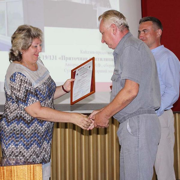Подведены итоги второго квартала по внедрению Системы 5С и Системы кайдзен в подразделениях21 августа в большом конференц-зале Арсеньевской авиационной компании "Прогресс" им. Н.И. Сазыкина состоялось подведение итогов конкурса "Мы хотим жить лучше с Системой 5С" и конкурса по подаче кайдзен-предложений за второй квартал 2017 года. С отчетной презентацией перед участниками конкурсов и председателями цеховых профсоюзных организаций выступила ведущий инженер отдела по развитию производственной системы Анна Гуцул, кубки и почетные грамоты победителям вручала заместитель директора по производству по персоналу Татьяна Анатольевна Деева. В своей вступительной речи Анна Гуцул подчеркнула, что количество заявок на конкурс "Мы хотим жить лучше с Системой 5С" с каждым кварталом неуклонно растет, и идеей 5С загораются не только из-за возможности получить денежную премию, но и для улучшения своего рабочего места, сокращения потерь времени и сил. Во втором квартале 2017 года конкурс охватил 33 рабочих места и 22 производственных участка. В номинации "Лучшее рабочее место, организованное по Системе 5С" третье место заняло рабочее место слесаря-инструментальщика цеха деталей и агрегатов из ПКМ Алексея Васильевича Гриня, которое он начал совершенствовать еще в 2016 году. За последний год он организовал свое рабочее место в соответствии со спецификой заданий и сделал его максимально удобным. "Мне было очень приятно участвовать в этом конкурсе. Мое рабочее место всегда было в порядке, я всегда стремился к этому, но после участия в конкурсе мне стало намного удобнее. Теперь я буду продолжать двигаться в этом направлении и привлекать своих коллег", — поделился Алексей Васильевич Гринь. Второе место было присвоено рабочему месту слесаря-инструментальщика слесарно-сварочного цеха Романа Вадимовича Куйдина. Роман Вадимович за короткий срок полностью отремонтировал и модернизировал старый верстак, а весь инструмент, крепежные элементы и сизы разместил в верстаке в удобном для себя положении. Первое место было присвоено рабочему месту сборщика цеха деталей и агрегатов из ПКМ Шаига Шарафэддиновича Сулейманова. За последний год им был произведен ремонт стола, подведена вытяжная вентиляция под столом, а инструмент расположен в прямой доступности в держаках. Также им был установлен отдельный ящик для хранения клея. В силу того что сам Шаиг Шарафэддинович в настоящий момент находится в отпуске, его награду получил председатель цеховой профсоюзной организации, мастер участка Юрий Анатольевич Султанов. "Помимо того что Шаиг Шарафэддинович занял первое место в конкурсе, на его рабочем месте за это время были внедрены двенадцать кайдзен-предложений. Можно сказать, что им было создано совершенно новое рабочее место сборщика, на основе которого мы планируем создать еще несколько рабочих мест", — сообщил Юрий Анатольевич. В номинации "Лучший производственный участок" во втором квартале этого года третье место занял участок Хадман цеха стапельной оснастки. На этом участке была проведена огромная работа по организации мест хранения входящей продукции и инструмента и всегда поддерживается чистота. Второе место было отдано участку S-MAX литейного цеха, на котором гармонично соединились новое оборудование, отремонтированное помещение и высокая организ