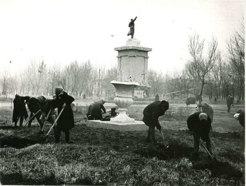 Монумент ПобедыВ прошлом выпуске газеты "Прогресс Приморья" (учредитель – Приморское региональное отделение Союза машиностроителей России) мы рассказали о памятнике заводчанам, погибшим в годы Великой Отечественной войны – об обелиске, воздвигнутом в 1968 году ровно 50 лет назад. Интересно, что это был не первый памятник в нашем городе, посвященный Победе в Великой Отечественной войне. В 2015 году я получила уникальную возможность ознакомиться с документами и фотографиями, сохранившимися в архиве семьи Николая Сергеевича Новикова, начальника строительства и директора завода с 1938 по 1959 годы. Среди документов нашелся напечатанный на машинке с правками рукой Николая Сергеевича текст его выступления на 25-летии завода. Было это в 1961 году. Тогда Н. С. Новиков жил в Московской области и приехал в Арсеньев на юбилей завода по приглашению помнящих и уважающих его работников завода и ветеранов. В тексте его выступления есть строки, вызвавшие у меня особый интерес: "Во время войны коллектив работал сплоченно и почти за каждый месяц получал места и переходящие знамена, по Всесоюзному фонду соцсоревнования присваивались средства, которые расходовались на премирование рабочих ИТР и служащих и 35–40 % от сумм премии расходовались на культурно-бытовые нужды. На эти средства оборудовались красные уголки цехов и заводоуправление, построен монумент Победы над фашистской Германией в 1941–1945 гг., а впоследствии шпиль монумента перенесли на павильон купальни в парке и на его место приобрели и воздвигли скульптуру т. И. В. Сталина". Строчки из воспоминаний Н. С. Новикова рассказывают о памятнике, некогда стоявшем напротив здания заводоуправления. Последовательное складывание фактов и сохранившихся фото в фондах музея истории и трудовой славы ПАО ААК "ПРОГРЕСС" вырисовывает интересную картину о том, что и когда украшало предзаводскую площадь, чьи скульптуры стояли на высоком постаменте, как заводчане сохраняли память о великой Победе… Изображение "монумента Победы", как его называет Н. С. Новиков в своих воспоминаниях, стоявшего когда-то на предзаводской площади, сохранилось в одном фотоальбоме в фондах музея авиакомпании. Сам альбом датирован 1945 годом, День Победы состоялся 9 мая 1945 года, а на фото видно, что лежит снег, а значит, предположительно, это не раньше, чем зима конца 1945 года. Сам монумент выглядит как высокий постамент со шпилем и звездой наверху. На фото видно, что на одной из граней высокого постамента – портрет И. В. Сталина в рост. Стоял он уже тогда, когда ныне действующее здание заводоуправления (вернее, его первая часть) только строилось. И стоял он на том месте, где сейчас расположен памятник Ленину, то есть напротив здания Учебного центра, а в те годы – здания заводской столовой, кстати, построенной в 1939 году. Важно отметить, что на постаменте шпиль имеет звезду на вершине и перехват по низу. Н. С. Новиков написал: "А впоследствии шпиль монумента перенесли на павильон купальни в парке…". Фотографий бассейна с видом на павильон сохранилось довольно много. Рассматривая каждую из них, понимаешь, что шпиль-то на купальне есть, но он, однозначно, в точности не такой, какой стоял на постаменте. В общем, начинают возникать вопросы… Н. С. Новиков также пишет: "шпиль монумента перенесли … и на его место приобрели и воздвигли скульптуру т. И. В. Стали