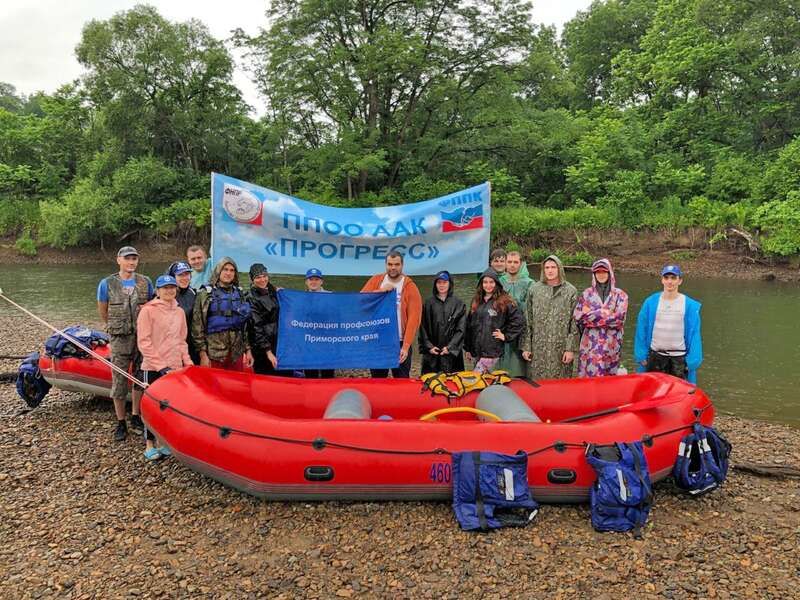 У природы нет плохой погодыИменно под таким девизом провели минувшие выходные активисты Первичной профсоюзной общественной организации Арсеньевской авиационной компании "Прогресс" им. Н. И. Сазыкина, лидера Приморского регионального отделения Союза машиностроителей России, осуществившие сплав по реке Арсеньевка, невзирая на хмурую и дождливую погоду. Куратором мероприятия традиционно выступила опытная туристка, председатель Молодежной профсоюзной комиссии предприятия, инженер по инструменту инструментального отдела Анна Рыжова. Большую поддержку в решении всех организационных вопросов, как и всегда, ей оказал её супруг, администратор вычислительной сети отдела сервиса и технической поддержки информационных технологий Сергей Рыжов. Прибыв к месту старта, недалеко от села Анучино, ребята накачали рафты и катамараны, упаковали свои вещи в специальные водонепроницаемые мешки и плотно позавтракали, чтобы запастись силами на длительное путешествие. Пройдя необходимый инструктаж и надев спасательные жилеты, они заняли места на своих плавсредствах и отправились в путь. Примечательно, что в этом году из 18 участников сплава опытных гребцов было подавляющее большинство. Набравшись положительных эмоций от прошлых поездок, ребята целый год ждали повторения этого захватывающего приключения. Кроме того, в этом году к авиастроителям присоединились представители Федерации профсоюзов Приморского края – Председатель Молодежного совета ФППК Дмитрий Зайнуллов и специалист департамента информационно-аналитической работы ФППК Владислав Савинский. На четырёхместном катамаране, который был приобретён Советом молодёжи предприятия совсем недавно, а потому требовал скорейшего проведения испытаний на прочность и манёвренность, удобно разместились Сергей и Анна Рыжовы, Юлия Бобровникова и Василий Ильин. На двухместном катамаране решились проверить свою выносливость Юлия Герман и Юрий Рахматулин, которые не сразу смогли отладить синхронность и силу гребков, но уже совсем скоро сработались и обогнали всех за счёт лёгкости и манёвренность этого плавсредства. На первом рафте собралась дружная и весёлая команда в составе Егора и Татьяны Терёхиных, Алёны Ивановой, Дмитрия Зайнуллова и Владислава Савинского. На втором рафте разместились целеустремлённые и слаженные Дмитрий и Елена Дубановы, Игорь Вишневский, Наталья Александрова и Александр Кревсун. Также к ребятам присоединились на двуместной "Уфимке" Василий Петров и Константин Касьяненко. Они неторопливо следовали за группой молодых энтузиастов, впервые наслаждаясь великолепием природы на этом маршруте. Василий в этот день был юбиляром, ему исполнилось сорок лет. Он надеялся утаить этот факт, но не тут-то было! Ребята его дружно поздравили, пожелали крепкого здоровья и всех благ. Несмотря на дождливую погоду, по берегам Арсеньевки встречалось много отмелей, местами русло реки расширялось или, наоборот, становилось достаточно узким. А порой заводчане встречали на своем пути самые настоящие препятствия в виде бурного течения, завалов и перекатов, а также нависших прямо над поверхностью воды деревьев. В некоторых случаях ребятам даже приходилось переносить свои плавсредства на руках. Сложностей добавлял и дождь, который то и дело настигал заводчан в пути. Но всё же всем 