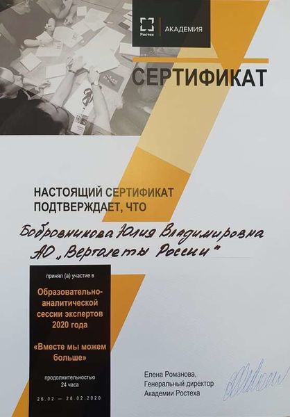 «Делай мир лучше силой своего мастерства!»Под таким девизом с 2012 года выступает движение профессионального мастерства WorldSkills Russia, целями которого являются популяризация рабочих профессий, повышение статуса и стандартов профессиональной подготовки, повышение квалификации специалистов рабочих профессий в России и по всему миру. Основные задачи проведения конкурсов профессионального мастерства – внедрение новых стандартов рабочих профессий, совершенствование экзаменационной системы в среднем профессиональном и высшем образовании c применением стандартов WorldSkills и создание системы для привлечения и развития молодых специалистов. Ежегодно команда экспертов ПАО ААК "ПРОГРЕСС", лидера Приморского регионального отделения Союза машиностроителей России, пополняется новыми экспертами по различным компетенциям машиностроительной отрасли, обучаясь в Академии Ростеха, которая обладает широким портфелем образовательных программ для сотрудников из разных областей деятельности и на разных уровнях управленческой структуры. Напомним, что Ростех активно участвует в международном движении WorldSkills, направленном на повышение престижа рабочих профессий и развитие профессионального образования. Корпорация выступала генеральным спонсором чемпионата WorldSkills Hi-Tech в 2016–2018 годах. В 2017 году в чемпионате приняла участие сборная Корпорации, в состав которой вошло более 90 специалистов. По итогам соревнований в 15 промышленных компетенциях Ростех в общекомандном зачете занял второе место среди крупнейших корпораций и компании России. Так, 26–28 февраля на базе Московского государственного образовательного комплекса "Академия Ростех" в сессии экспертов по компетенции "Неразрушающий контроль" приняла участие инженер-технолог отдела главного металлурга Юлия Бобровникова, и команда экспертов-авиастроителей пополнилась еще одним сертифицированным специалистом. Юлия в 2018 году отстаивала честь предприятия на чемпионате WorldSkills Hi-Tech в качестве участника по компетенции "Неразрушающий контроль". За три дня обучения она не только повысила свой уровень знаний, но и получила сертификат, который даёт ей право стать экспертом в области неразрушающего контроля. Предварительно все участники сессии экспертов прошли дистанционное онлайн-обучение, состоящее из 8 видеоуроков и различных материалов печатного характера, после чего было проведено онлайн-тестирование. Обучение было достаточно сложным, но интересным. "Я заинтересована в развитии нашей компетенции "Неразрушающий контроль", потому что это мое профильное образование, – делится мнением Юлия Бобровникова. – Мне это интересно и важно. Необходимо продвигать именно это направление на нашем предприятии". В программе "Эксперт по компетенции неразрушающего контроля" в рамках подготовки к чемпионату WorldSkills Hi-Tech Юлия сразу начала со сложного. Целью программы было формирование и расширение качественно подготовленного экспертного сообщества по конкретной компетенции. Здесь слушатели более подробно окунулись в изучение материалов подготовки проведения чемпионатов, его стандарты и регламентирующие документы, а также правила оценивания заданий чемпионатов по стандартам WorldSkills International и WorldSkills Russia. "В первый день мероприятия проходило бурное обсуждение, решались профессиональные вопросы, мы 