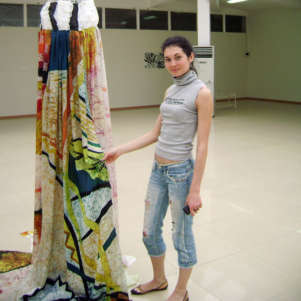 Веер для АнныПервая персональная выставка владивостокской художницы Анны Парменовой представляет всю сферу ее творческих интересов: здесь — горячий батик, шелкография (не зря же Анна освоила в Санкт-Петербурге редчайшую в нашем городе профессию художника по ткани), инсталляции, а главное — экспериментальные работы. "Я же монументалист-текстильщик, — смеется Анна, — мне важно играть с фактурой". Эти игры она устраивает с самыми разными материалами — от бумаги... до полиэтилена. С этим материалом Анна вообще творит чудеса, в ее руках он превращается то в подобие войлока, то — папиросной бумаги... Кто бы мог подумать, что такой обычный материал дает такую свободу творчества! — Я люблю экспериментировать, — улыбается художница. — Вот, показалось, что будет интересно в традиционном гобеленовом плетении вместо нитей утка использовать полиэтилен, который просто резала на полоски и сматывала в клубочки, как пряжу. Чтобы создать эффект фактуры — я же художник-текстильщик, для меня очень важна фактура, — я нагрела этот полиэтилен строительным феном. И получается очень необычно и интересно. Вообще, полиэтилен — непредсказуемый материал, иногда получается совершенно неожиданный эффект. Вообще очень люблю наблюдать за разными материалами... Ведь это так интересно, смотреть, как материал проявляет свой характер, понимать его, изучать. Анна окончила Санкт-Петербургскую художественно-промышленную академию имени Штиглица. Кроме того, училась ювелирному делу, профессионально занимается фотографией и живописью. А еще... изучает себя — и потому все женские образы на выставке, по сути, автопортреты... — Мне кажется, сначала нужно изучить себя, а потом уж идти дальше, — говорит Анна. — Каждый из автопортретов проявляет какую-то часть моей натуры. Любое полотно или живопись на выставке — моя маленькая история, мои переживания или внутренние ощущения, вся жизнь здесь. Художники не выражают себя словами, у них все прочитывается в работах... В каждой работе на выставке в той или иной форме присутствует веер. То он просто деталь в композиции, то чуть ли не самая важная часть картины... Объединяющий элемент. Не зря же и выставка так называется, не зря и Анну так волнуют веера... — На моем столе лежал веер, довольно долго лежал, — рассказывает Анна. — А потом я вдруг словно впервые его увидела, другим взглядом посмотрела. И поняла, насколько это интересный предмет: он служит как мужским, так и женским аксессуаром, особенно на Востоке, раскрывается и закрывается, как человек, это удивительно глубокий образ... Веер и стал связующим звеном всей выставки, он помогает мне раскрыть образ женщины. Женщинам вообще выставка Анны Парменовой придется по душе. Особенно — ее ткани. Серия батиков "Солнечная" или "Морская", к примеру, заставляют женские души трепетать — ах, из таких бы сшить себе, к примеру, платье... Как признается Анна, она и сама мечтает не только о художественном, но и о прикладном творчестве, о том, чтобы ее ткани, с ее рисунками, радовали людей не только в стенах выставочных залов, но и на улицах — в одежде... — Я люблю живые сочные цвета. Когда только начала учиться в Петербурге, тосковала по цвету. Там так серо, так рано темнеет, нет такой яркости, как во Владивостоке. И поначалу искренне не понимала, почему преподаватели академии учат добавлять грязные цве