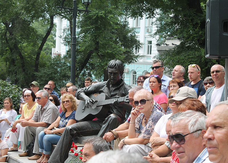 Место встречи изменить нельзяСколько бы ни прошло десятилетий, память о великом барде, поэте, актёре Владимире Семёновиче Высоцком будет жить и передаваться из поколения в поколение. Все споры по поводу установления памятников в России этому поистине могучему человеку постепенно сходят на нет. И то, что к памятнику, установленному во Владивостоке, народная тропа не зарастёт, — точнее точного. Интересно то, что сюда приходят люди не только в день рождения Высоцкого или в день его смерти: они останавливаются здесь и в будни и невольно засматриваются на динамичную фигуру с гитарой. Пожалуй, лучшего памятника во всей нашей большой России не сыскать. Здесь и стар и млад всегда с Высоцким. Так было и в День ВМФ, когда владивостокцы и гости города почтили память Владимира Высоцкого собственным исполнением его песен. "Спасибо, что живой…" — так называлась литературно-музыкальная композиция, организованная у памятника Высоцкому в Театральном сквере. Как сообщил корреспондент газеты Приморского регионального отделения СМР "ПП", в ходе концерта прозвучали стихи и песни Владимира Семёновича в исполнении приморских бардов и выпускников Дальневосточной государственной академии искусств. Работал свободный микрофон, где все желающие могли поделиться своей "встречей" с Высоцким. Организаторы предлагали всем гостям рассказать о том, когда впервые любители творчества поэта и музыканта, ярчайшего актёра услышали его песни, прочитали стихи, посмотрели фильмы и какое впечатление произвело на них в целом творчество Высоцкого. Мэр города Игорь Пушкарёв тоже посетил это мероприятие в качестве гостя, как человек , неравнодушный к самому Высоцкому, и как тот, кто непосредственно помог с открытием памятника во Владивостоке. Люди в этот день не только слушали песни и выступали у микрофона, но и могли записаться в читатели муниципальной библиотечной системы и получить единый электронный билет. Атмосфера праздника была особенная, какая бывает на бардовских вечерах и встречах единомышленников. Каждый гость, побывавший на этом мероприятии, вспоминал "своего Высоцкого" — яркого актёра не только кинокартин, но и собственных, созданных им образов и персонажей, органичных выразителей всей эпохи. «Прогресс Приморья», № 30 (344) от 06.08.2015 г. |