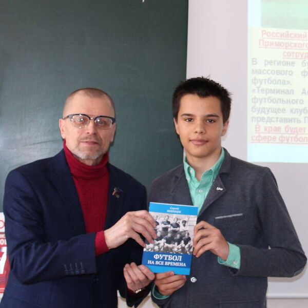 «Футбол на все времена»В рамках Всероссийской акции "Неделя без турникетов", организатором которой является Союз машиностроителей России, в школах Приморского края прошли встречи со старшеклассниками. Во Владивостоке такую встречу организовали Приморское РО СоюзМаш России и библиотека имени И. У. Басаргина. Помимо того что программа встречи с восьмиклассниками 64-й школы включала тему, названную "Продукция заводов ОПК Приморья в период Великой Отечественной войны", член Союза машиностроителей России журналист Сергей Юдинцев провёл презентацию своей книги "Футбол на все времена", в которой есть глава о том, как советские спортсмены сражались с врагом не только с оружием в руках, но и на футбольных полях. В книге, например, рассказывается о "матче смерти", товарищеской игре с участием сталинградского "Динамо" и московского "Спартака", других спортивных мероприятиях того периода. После представления отдельных глав книги аудитории автором была проведена викторина, которая включала в себя вопросы по теме, обозначенной в "Футболе на все времена". Например, был вопрос: когда арсеньевская команда "Авангард" завоевала Кубок Приморского края в последний раз? Был дан точный ответ: в 2018 году, в год, когда Россия впервые в своей истории принимала чемпионат мира по футболу. Самым активным и знающим "архивариусом" оказался Максим Милославский. Автор книги Сергей Юдинцев отметил усердие многих ребят, но особо выделил именно Максима, которому и вручил на память книгу "Футбол на все времена" с автографом. «Прогресс Приморья», № 17 (623) от 14.05.2021 г. |