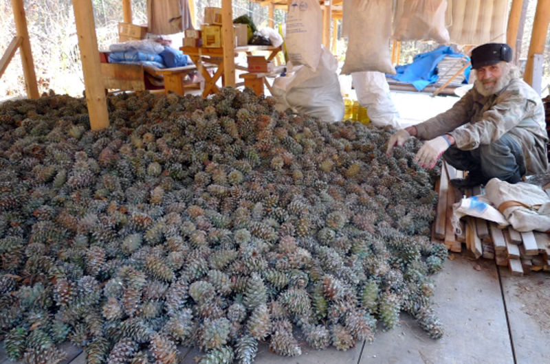 Урожайный год кедрового орехаНа рынках края в большом количестве появилась по-настоящему калорийная продукция — кедровый орех. Как заметил один из активных членов Приморского регионального отделения Союза машиностроителей России, в прошлом году такого лесного экологически чистого продукта было меньше. Мы побывали в Красноармейском РЗОП "Сидатун" и выяснили, как обстоит дело с выращиванием и, главное, сохранением кедровых угодий. Тут есть и положительные моменты, и не очень. Об этом и поговорим. В орехово-промысловых зонах Приморья, взятых при поддержке WWF в аренду в недревесное пользование, — большой урожай. Но для развития комплексного освоения лесных ресурсов необходимо существенное изменение законодательства. Кедрово-широколиственные леса Дальнего Востока являются домом амурского тигра, местом традиционного образа жизни коренных малочисленных народов, основой природопользования для таежных поселений и уникальным объектом для сохранения климата на планете. С 2007 года при поддержке Всемирного фонда дикой природы (WWF) более 600 тысяч гектаров ценных лесов Приморья — Бикинской, Восточной, Мельничной и Кокшаровской орехово-промысловых зон (ОПЗ) — были переданы в аренду на срок до 49 лет для заготовки пищевых лесных ресурсов и сбора лекарственных растений. Так на территории лучших нетронутых кедровников появились арендаторы, кровно заинтересованным в сохранении "деревьев-кормильцев" и получении максимальной выгоды не от ведения рубок, а от комплексного освоения недревесных ресурсов. В ситуации, когда даже статус защитных лесов не мог спасти их от уничтожения, а кедр рубили повсеместно, такие аренды стали историческим событием и для лесного хозяйства, и для охраны природы. В этом году, впервые после взятия ОПЗ в аренду в недревесное лесопользование, в Приморье наступил настоящий урожайный год и начался промышленный сбор кедрового ореха. Какие надежды возлагают таежники на урожай и с какими проблемами сталкиваются — с этими вопросами в конце октября журналисты приморского экологического пресс-клуба "Последняя среда" побывали в Мельничной орехово-промысловой зоне. Кедровники здесь действительно уникальны: редкие для Дальнего Востока стопроцентные кедрачи занимают значительные площади и сконцентрированы в единый массив. Несмотря на то, что арендатором 22 тысяч га Мельничной ОПЗ является Красноармейский РЗОП, хозяином этой территории можно назвать общественную организацию охотников и рыболовов "Сидатун", управляющую ею непосредственно из села Мельничное. "Сидатун" объединяет 150 охотников из сел Мельничное, Таежное, Молодежное, имеет в аренде 360 тысяч га охотугодий, включая Мельничную ОПЗ, и, по сути, выполняет роль единственного градообразущего предприятия этих поселений. Именно охотникам в 2008 году с участием WWF России удалось отстоять территорию Мельничной орехово-промысловой зоны от рубок, и сейчас по договору с Красноармейским РЗОП "Сидатун" осуществляет охрану кедрачей от пожаров, браконьерства и занимается заготовкой пищевых лесных ресурсов и лекарственных растений. Кедровый орех — основной ресурс, который может принести доход как селянам, так и организации. "Сегодня мы ведем промышленную заготовку в разрешенных объемах согласно лесной декларации, — говорит председатель правления ООиР "Сидатун" Олег Ю