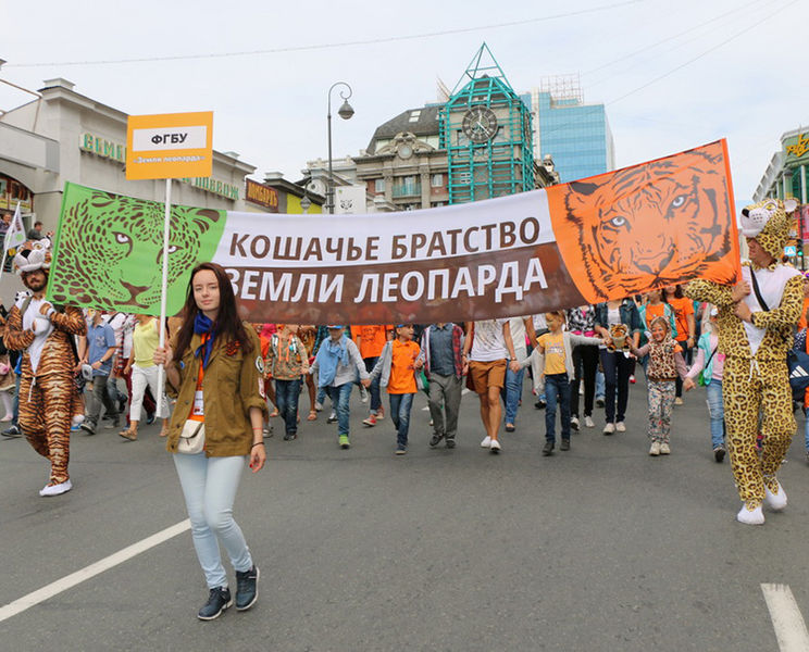 Тигрино-леопардовая колонна на улицах краевого центраБолее 200 школьников, студентов и волонтеров в воскресенье представили колонну национального парка "Земля леопарда" в праздничном шествии в честь Дня тигра. Каждый из участников группы был одет в тигрино-леопардовую маску, символизирующую мирное соседство двух редких кошек. Масштабное шествие по Океанскому проспекту традиционно открыло День тигра, который в этом году пришелся на 27 сентября. В нем приняли участие около 15 тысяч человек. Праздник отмечается в шестнадцатый раз, и уже несколько лет подряд колонна национального парка "Земля леопарда" проходит в десятке первых. Ведь именно на этой территории фиксируется максимальное количество амурских тигров в сравнении с другими нацпарками и заповедниками России, а именно — 30 особей. В этом году в колонне "Земли леопарда" до центральной площади прошли учащиеся владивостокской гимназии № 1, колледжа ДВФУ, волонтеры движения "Твой след" и сотрудники ООО "Газпром". В празднике приняли участие и представители Приморского регионального отделения СМР. Интересно то, что в этот день производственники нашего края отмечали свой профессиональный праздник — День машиностроителя. Заметим, что все участники шествия выделялись различной расцветкой и оригинальностью. В отличие от других колонн, например, символика группы национального парка была не только полосатой, но и пятнистой. Все ее участники надели оригинальные маски, половина которых изображает морду тигра, а половина — леопарда. "Благодаря зимнему учету этого года мы знаем, что "Земля леопарда" — самая "тигриная" территория в стране, и нам есть чем гордиться, — говорит Зиля Ибатуллина, заместитель директора по туризму и экопросвещению ФГБУ "Земля леопарда". — День тигра — один из шагов на пути поиска взаимопонимания между человеком и дикой природой. Поэтому этот яркий праздник дает прекрасную возможность реализовать некоторые аспекты этой стратегии не только на государственном, но и на общечеловеческом уровне". Вместе со стартом шествия свою работу на центральной площади Владивостока начали тематические площадки, одну из которых также представляла "Земля леопарда". Для тех, кто не попал в колонну национального парка, здесь была предоставлена возможность самостоятельно сделать себе тигрино-леопардовую маску. С этой целью волонтеры вели бесплатные мастер-классы по раскраске изображений. Также на площадке "Земли леопарда" каждый мог сыграть в "звериный твистер" и получить призы за участие. Здесь же все желающие узнавали об изучении животных на юге Приморья, а также фотографировались с аниматорами в костюмах зверей. Помимо работы тематических площадок на центральной площади города прошёл конкурс экологических команд по чирлидингу и презентация природоохранных организаций Владивостока. Завершился День тигра музыкальным концертом с участием Александра Буйнова и группы "Моральный кодекс". «Прогресс Приморья», № 38 (352) от 01.10.2015 г. |