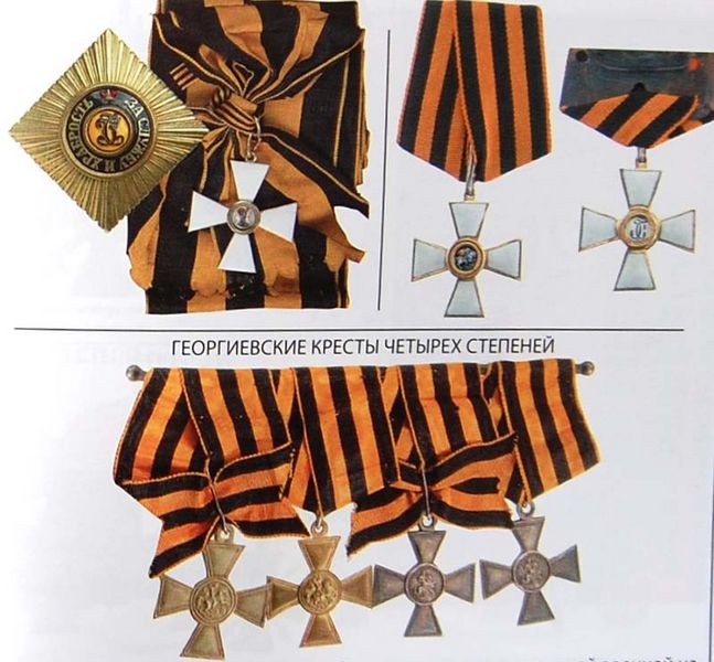 День Георгиевского кавалераГеоргиевский кавалер в России всегда считался героем Отечества. И если, например, солдат возвращался с войны с Георгиевским крестом на груди, то окружающие относились к нему уважительно и с почтением. В другом случае, если на груди воина теснились четыре "Георгия", такой человек являл собой чуть ли не божество. При подготовке данного материала для редакции газеты Приморского регионального отделения Союза машиностроителей России пришлось перечитать немало литературы о Георгиевских кавалерах. И вот что выяснилось: предшественником каждой новой награды являлся чей-то образ. Судите сами. Орден Святого Великомученика и Победоносца Георгия учреждён в 1769 году. И с того времени им награждаются те, кто отличился на поле брани. Святой Георгий не стал единственным в наградной системе страны. Екатерина I в бытность своего правления учредила орден Святого Благоверного Князя Александра Невского. Многим поколениям россиян известна фраза великого полководца: "Кто с мечом к нам придёт, от меча и погибнет!". Задумал этот орден Пётр I для награждения за военные заслуги, но им награждали и гражданских лиц, отличившихся на трудовом поприще. Орден имел лишь одну ступень — кавалера. Бриллиантами знаки ордена стали украшать в 1797 году, что подчёркивало его высшую степень. С 1855 года к орденам, жалуемым за военные подвиги, присоединились скрещенные мечи. Упразднён орден в 1917 году. В 1942 году в СССР был утверждён для награждения командного состава РККА. После распада СССР сохранён в системе государственных наград, но до 2010 года не имел статута и награждения им не производились. Является единственной наградой, существовавшей (с изменениями) в наградных системах Российской империи, СССР и Российской Федерации. Известно 3674 факта награждений за время существования ордена. Больше всего награждённых было в 1916 году (105 человек). Символами ордена являются: знак ордена, звезда и лента. Знак ордена представляет собой красный крест с изображением святого Александра Невского. Звезда серебряная восьмиконечная. Девиз ордена — "За труды и Отечество". "За службу и храбрость"Однако вернёмся к исключительно военной награде. Орден Святого Великомученика и Победоносца Георгия учреждён императрицей Екатериной II. Весь период по праву считался военной наградой Российской империи. Представлял собой всеохватывающий комплекс отличий офицеров, нижних чинов и коллективной награды для воинских подразделений, включающий, кроме собственно ордена, знак отличия военного ордена для нижних чинов, георгиевские знамёна, штандарты и флаги, георгиевские трубы, петлицы и ленты, а также георгиевское оружие. Упразднён в 1917 году. Восстановлен в 2000 году в качестве воинской награды Российской Федерации. Был разделён на четыре степени, награждения производились от низшей степени и по восходящей. В Российской империи награждено более 10 тысяч человек. I степенью награждено 23 человека, II степенью — 121 человек, III степенью — 638 человек. В Российской Федерации тоже есть кавалеры этого ордена. Символы ордена: знак ордена, звезда и лента. Знак ордена представляет собой белый крест с изображением Святого Георгия, поражающего дракона. Звезда золотая четырёхконечная. Лента с тремя чёрными и двумя жёлтыми полосами. Девиз ордена — "За службу и храбрость". Несмотря на то что 