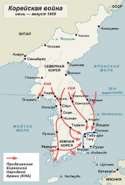 Две КореиВ первой части материала "Две Кореи" редакция газеты Приморского регионального отделения Союза машиностроителей России рассказала о причинах разделения Кореи на Северную и Южную, стремительно зреющем противостоянии и нагнетании военной угрозы на полуострове. Читайте продолжение. Наращивание боевой мощиКим Ир Сен и Сталин провели переговоры. Ссылаясь на недостаточную степень готовности северокорейской армии и возможность вмешательства в конфликт войск США и развязывания полномасштабной войны с применением ядерного оружия, Сталин не спешил удовлетворить просьбы Ким Ир Сена. Вероятнее всего, Сталин считал, что ситуация в Корее может привести к новой мировой войне. Несмотря на это, СССР продолжал оказывать Северной Корее большую военную помощь, КНДР наращивала свою военную мощь, организуя армию по советской модели и под руководством советских военных советников. Большую роль также играли этнические корейцы из Китая, ветераны Народно-освободительной армии Китая, которые с согласия Пекина перешли на службу в северокорейские вооружённые силы. Таким образом, к началу 1950 года северокорейские ВС превосходили южнокорейские по всем ключевым компонентам. Наконец, после немалых колебаний и поддавшись на настойчивые уверения, Сталин дал согласие на проведение военной операции, но не сразу, а после долгих уверений Ким Ир Сена. Детали были согласованы во время визита Ким Ир Сена в Москву в марте-апреле 1950 года. В разработке плана принимал участие главный военный советник в КНДР генерал-лейтенант Николай Васильев. 27 мая советский посол в Северной Корее Терентий Штыков сообщил в телеграмме Сталину, что общий план нападения готов и одобрен Ким Ир Сеном. НачалоВ предрассветные часы 25 июня 1950 года северокорейские войска под прикрытием артиллерии перешли границу Южной Кореи. Численность сухопутной группировки, обученной советскими военными советниками, составляла 175 тысяч человек, в её составе было 150 танков Т-34, в военно-воздушных силах имелось 172 боевых самолёта. Со стороны Южной Кореи численность сухопутной группировки, обученной американскими специалистами и вооружённой американским оружием, к началу войны составляла 93 тысячи человек; южнокорейская армия почти не имела бронетехники и располагала всего лишь некоторым количеством лёгких учебно-боевых самолётов. Правительство Северной Кореи заявило, что "изменник" Ли Сын Ман вероломно вторгся на территорию КНДР. Продвижение северокорейской армии в первые дни войны было весьма успешным. 28 июня была захвачена столица Южной Кореи — город Сеул. Главные направления удара включали также Кэсон, Чхунчхон, Ыйджонбу и Онджин. Был полностью разрушен сеульский аэропорт Кимпхо. Однако главной цели достичь не удалось — молниеносной победы не получилось, Ли Сын Ману и значительной части южнокорейского руководства удалось спастись и покинуть город. Массового восстания, на которое рассчитывало северокорейское руководство, также не случилось. И всё же к середине августа до 90 % территории Южной Кореи было занято армией КНДР. Для США и других западных стран начало войны в Корее стало неожиданным: буквально за неделю до наступления, 20 июня, Дин Ачесон из Государственного департамента в своём докладе Конгрессу заявил, что война маловероятна. Трумэну о войне сообщили через нескольк
