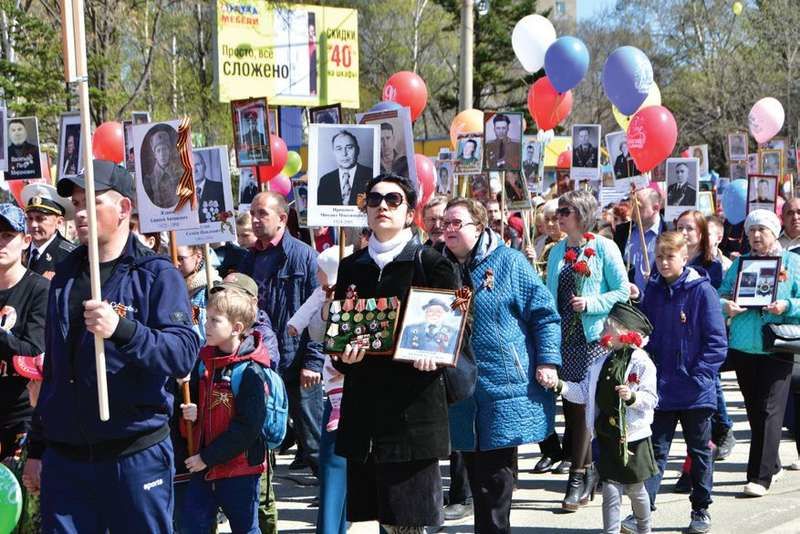 Жизнь не кончится, пока течёт река «Бессмертного полка»Трудовой коллектив Дальневосточного завода "Звезда", входящего в состав Приморского регионального отделения Союза машиностроителей России, прошел в колонне "Бессмертного полка" в городе Большой Камень. …По улицам, проспектам, по стране. Шагают в ряд с портретами в руках Потомки победителей в войне. Участие в параде 9 мая для заводчан – многолетняя традиция. Прошли времена, когда людей надо было "сгонять" на демонстрации, мотивировать премиями или отгулами. Побывав единожды в День Победы на главной площади города, навсегда пропитываешься особым духом, настроением, гордостью за страну, в которой живёшь, за предприятие, на котором трудишься. Разве могут оставить равнодушными трогательные и торжественные колонны редеющих с каждым годом детей войны и многократно преумноженного "Бессмертного полка", возложение гирлянды к памятнику землякам-шкотовцам, погибшим на фронтах Великой Отечественной войны. 9 мая вот уже 73 года – "праздник со слезами на глазах". Из года в год редеет строй ветеранов войны и тружеников тыла. Мы – последнее поколение землян, кому выпала великая честь жить в одно время с настоящими героями. Для заводчан 9 мая – праздник особенный. Именно в этот день многотысячный коллектив собирается вместе, чтобы единым строем пройти по Корабельной площади. Нынешний год не стал исключением. Тем более, вопреки всем неблагоприятным прогнозам, с самого утра выглянуло солнце, осушив надоевшие лужи. Хочется верить, что именно патриотизм и благодарность своим предкам – главная движущая сила, которая собрала работников завода, а внутризаводской конкурс на лучшее тематическое оформление праздничной колонны – лишь яркое воплощение наших талантов. Казалось бы, за время его существования трудно удивить, придумать что-то новое, но из года в год не иссякает выдумка и фантазия заводчан. Каждый праздник Победы есть на что посмотреть, чему удивиться и порадоваться за коллег. В этом году трудовые знамёна предприятия несли лучшие работники основного производства – судокорпусники-ремонтники цеха 12 братья Василий, Андрей и Сергей Литвинцевы, награждённые медалью "За заслуги перед Отечеством" II степени. Возглавил колонну и.о. исполнительного директора Владимир Владимирович Горяйнов. Хочется отметить, что многие подразделения неформально подошли к празднованию Дня Победы, обновив свои колонны новыми элементами. Это 5, 8, 11, 13, 14, 16, 17, 52, финансовый блок. Так, подразделение 5 "построило" легендарную "Катюшу". Цех 13 в двух сценках изобразил целую историю, как "ковали Победу" – трудовой и боевой подвиг народа. Цех 16 всегда берёт масштабностью – огромный баннер и ширма-самоходка бросались в глаза и привлекали всеобщее внимание. Одной из самых запоминающихся и ярких стала колонна цеха 17, где были представлены все рода войск – от танка до подводной лодки. Цех 6 повторил прошлогоднюю сценку пленённого партизанами упитанного полицая, но смотрелась она свежо и по-новому. Финансовый блок выделился организованностью и интересным оформлением, одинаковые защитно-камуфляжные береты стильно смотрелись и на мужчинах, и на женщинах. Управление 52, несмотря на свою "молодость", довольно слаженно и дружно подготовилось к празднику – конструкторы и технологи смогли даже воссоздать миниатюрную версию под